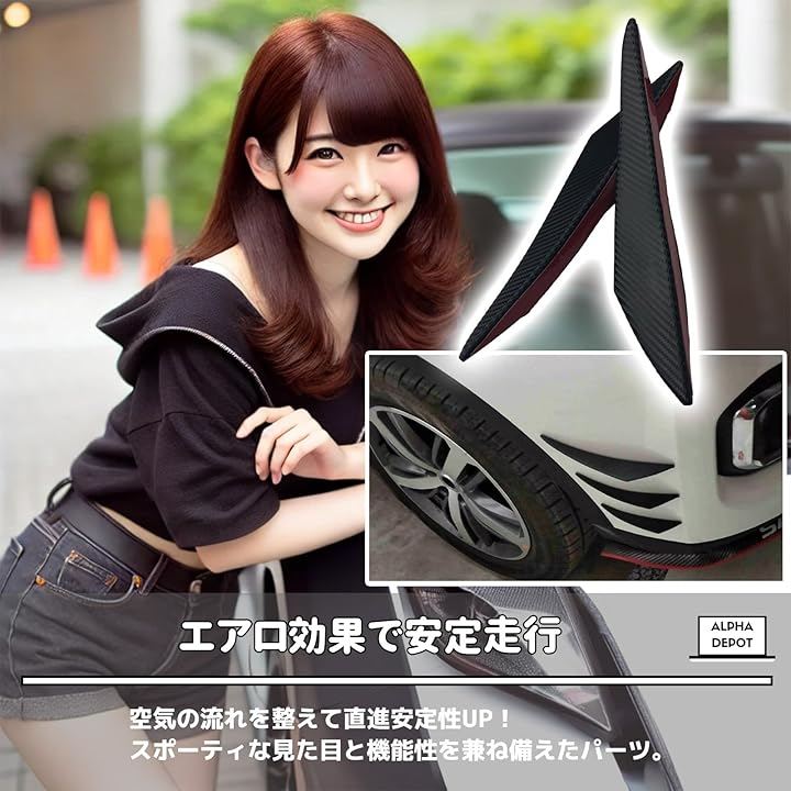 「エアロパーツとしての効果」カナードは、バンパー横に装着することで空気の流れを調整し、直進安定性の向上やコーナリング時の走行性能アップに貢献。