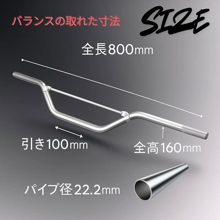 「汎用22.2mm対応」全長800mm・パイプ径22.2mm設計でオンロード・オフロード問わず幅広い車種に装着可能。