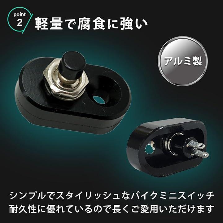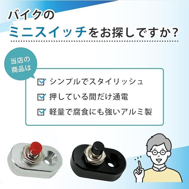 特徴:シンプルでスタイリッシュなバイクハンドルミニスイッチで、押している間だけ通電するプッシュボタンです。