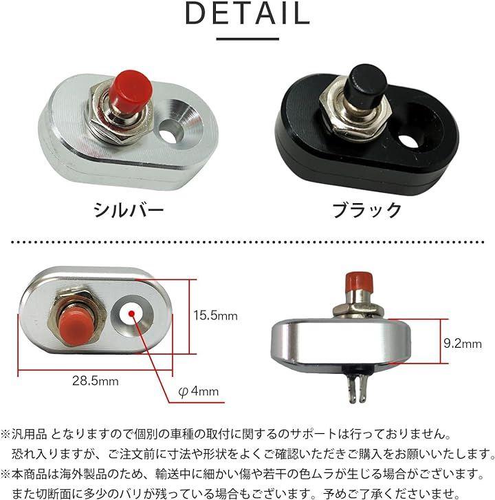 ご使用例:押している間だけ通電するので、スターターセルホーンパッシングなどのカスタムボタンにご利用いただけます。