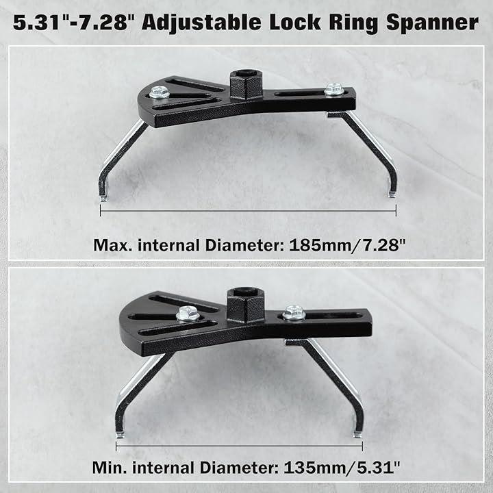 調整可能なサイズ:この燃料タンクロックリングツールは、異なるオイルポンプロックリングに適した大きな調整範囲(135-185mm/5.31-7.28)を有しています。
