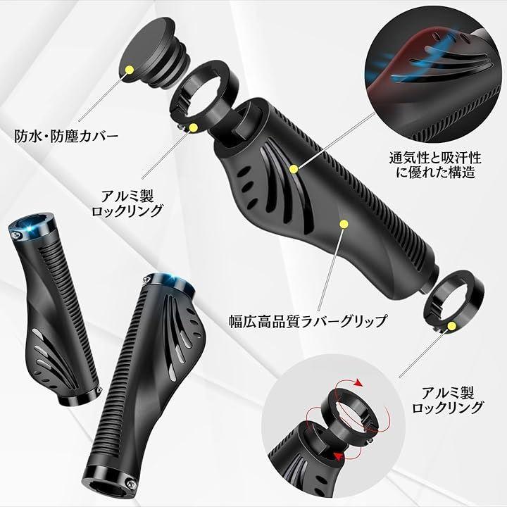 「快適なライディング」長時間のサイクリングでも疲れにくい、人間工学に基づいたエルゴ設計のグリップです。