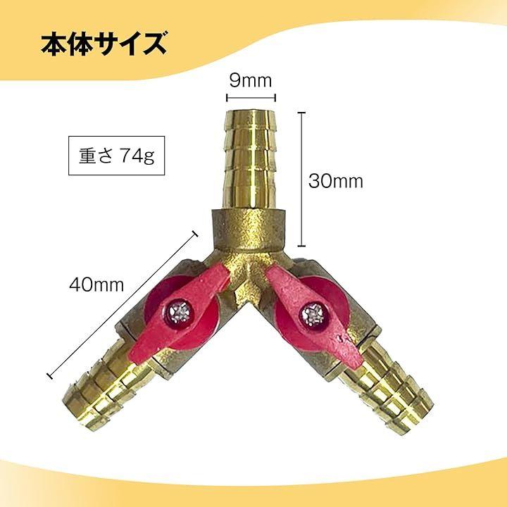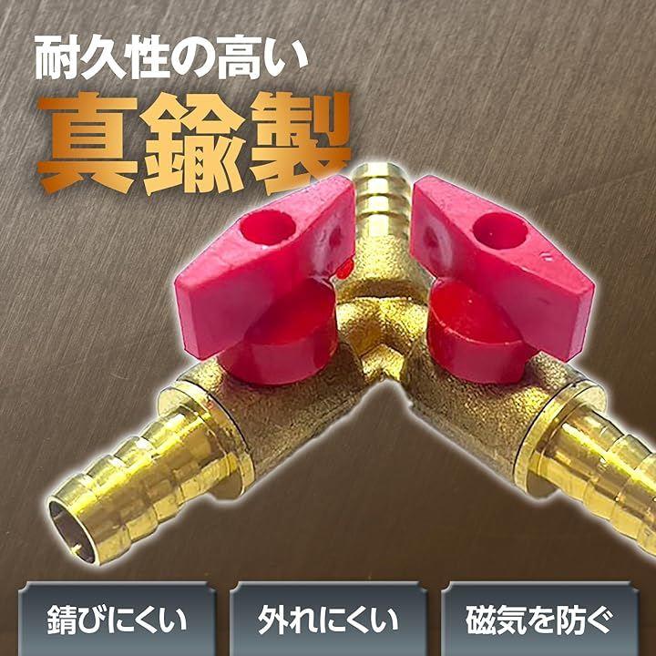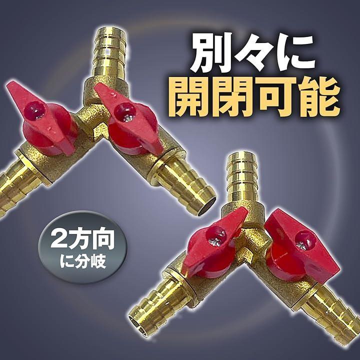 コック付のジョイントなので使い勝手抜群 バルブでオンオフの切り替えも簡単 二股変換で合計4口でお使いください。
