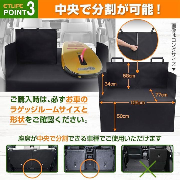 中央のチャックで分割も可能 : 自転車、スキー板、サーフボードなど座席を片側だけ倒したい時にも中央のチャックで分割可能。