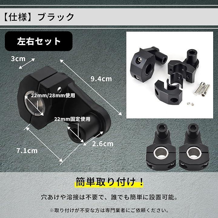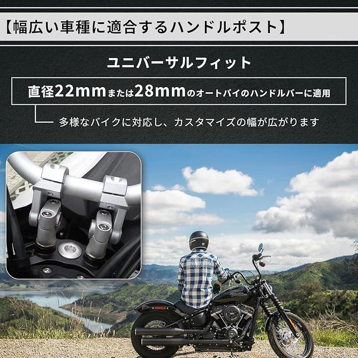 「幅広い車種に適合するハンドルポスト」ユニバーサルフィットで、直径22mmまたは28mmのオートバイのハンドルバーに適用。