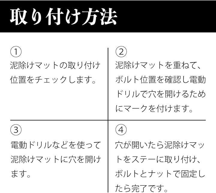 耐久性に優れ、さまざまな車種にフィットするため、泥除けをお探しの方におすすめの一品です。