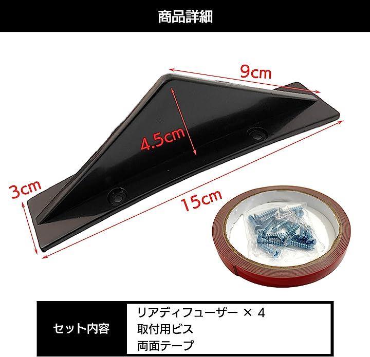 シャークフィン型のデザインで、取り付けも簡単なリアディフューザー4個セットです。