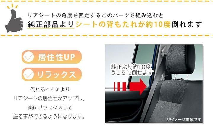 リアシートの角度を固定するこのパーツを組み込むと、純正部品よりシートの背もたれが約10度倒れます。