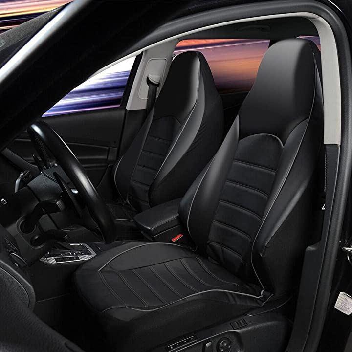 ユニバーサルバケットシートカバーは柔らかい合成皮革素材でフィット性が高く、簡単に取り付けれて、通気性が良くオールシーズン使用可能で手触りが良い。