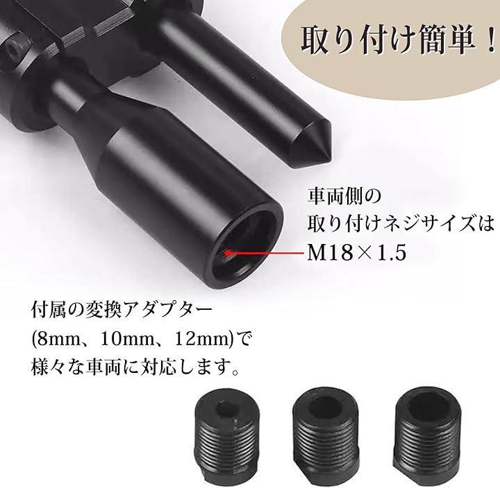 車両側の取り付けネジサイズはM18x1.5で、さらに、8mm、10mm、12mmの3種類の変換アダプターが付属しています。