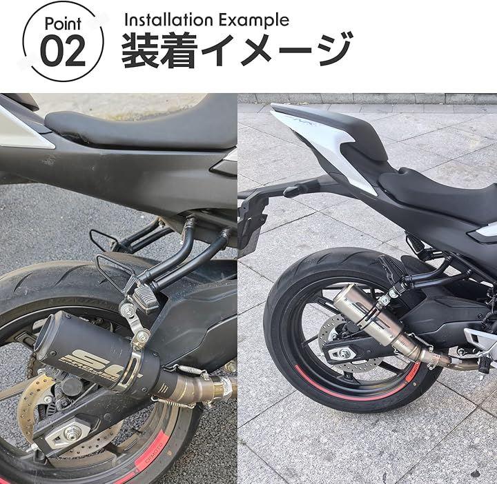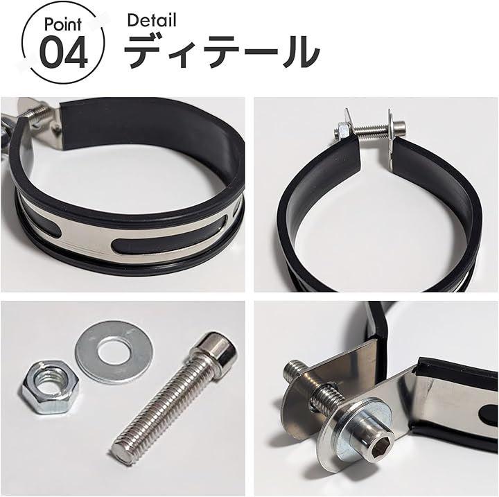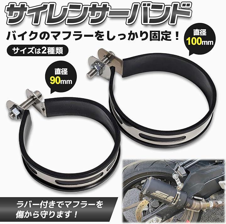 「サイレンサーバンド」ステンレス製でバイクのマフラーをしっかりと固定し、走行中の振動や衝撃から保護。