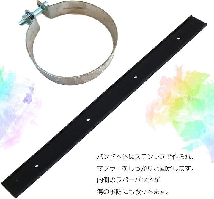 サイレンサーバンド バンド本体はステンレスで作られ、マフラーをしっかりと固定します。