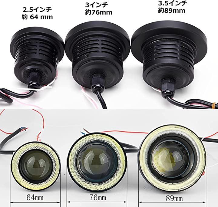電圧:DC12V/汎用 2.5インチ(約 64 mm)、3インチ(約76mm)、3.5インチ(約89mm) パワー:10W(フォグランプ) 動作温度:-40~80℃防水等級:IP65 色温度:約7500~8000k ルーメン:1100LM(フォグランプ) 中心部分(共通):ホワイト本体材質:アルミヒートシンク セット内容:フォグランプx2個、ステー金具配線:*赤色>フォグ+12V*ピンク>イカリング+12V*黒/白>アース