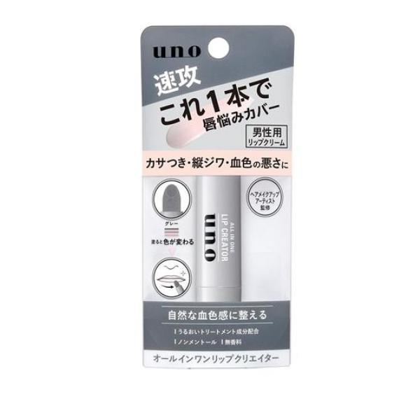 製品の特徴●UNO ウーノ オールインワンリップクリエイター f●男性の唇悩み(カサつき・縦ジワ・血色の悪さ)をこれ1本で速攻カバーできる男性用リップクリーム。●資生堂ヘアメイクアップアーティスト監修。血色感アップ成分配合で、唇に塗るとグレーから色が変化し、血色感のある自然な仕上がりに。●縦ジワ補正ベースが光を反射し、縦ジワを目立たなくします。●うるおいトリートメント成分配合。みずみずしく、べたつかない仕上がりです。●ノンメントール。●無香料。