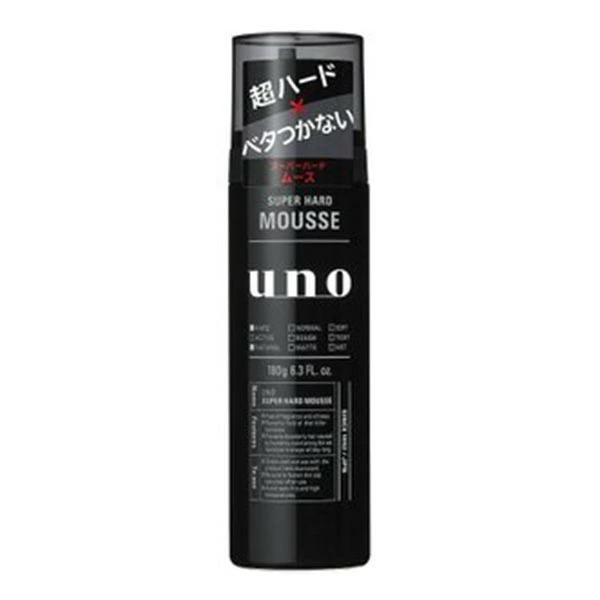 商品区分:化粧品 【ウーノ スーパーハード ムースの商品詳細】 ●キッチリ固定。超強力ムース ●クリーミーな泡でごわつきがなく、超ハードに強力固定 ●湿気による崩れを防ぎ、ヘアスタイルを一日中キープ ●髪をいたわるトリートメント成分配合 ●ベタつき防止処方で、手にも髪にもベタつかない ●無香料・アンチオイリー 【使用方法】 ・よく降る ・下向き使用 ※上向きで使うと、ガスだけが出て中味が残ります。 【成分】 水、エタノール、LPG、(メタクリロイルオキシエチルカルボキシベタイン/メタクリル酸アルキル)コポリマー、水添ポリイソブテン、PEG-60水添ヒマシ油、マルチトール、セテス-20、PPG-2-デセス-12 【注意事項】 ・ボタン内部の中味乾燥を防ぐため、ご使用後はキャップをきちんとしめてください。 ・乳幼児の手の届かないところにおいてください。 ・缶がさびると破裂の原因になりますので、湿気の多いところにおかないでください。 ・捨てるときには、火気のない戸外で噴射音が消えるまでボタンを押し、ガスを抜いてください。 ★火気と高温に注意 ・高圧ガスを使用した可燃性の製品であり、危険なため、下記の注意を守ること (1)炎や火気の近くで使用しないこと (2)火気を使用している室内で大量に使用しないこと (3)高温にすると破裂の危険があるため、直射日光の当たる所やストーブ、ファンヒーターの近くなど温度が40度以上となる所に置かないこと (4)火の中に入れないこと (5)使い切って捨てること 高圧ガス:LPG ・頭皮に傷はれもの湿しん色抜け(白斑等)や黒ずみなどの異常が生じていないかよく注意して使用してください。 ・頭皮に合わないときは、使用を中止し、皮ふ科医などにご相談ください。 ・目に入らないよう注意し、入ったときはすぐに洗い流してください。 【原産国】 日本 【注意事項】 ※パッケージリニューアルやキャンペーン等で掲載画像とは異なる場合があります ※開封後の返品や商品交換はお受けできません エフティ資生堂 105-8310 東京都港区東新橋1丁目6番2号 0120-81-4710