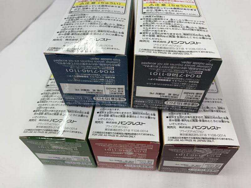 箱にヤケやイタミ、ヤブレやヨゴレが見られます。予めご了承ください。いずれも未開封品ですが、アミューズメント景品ですので、アーム爪痕、落とし痕、テープの多重貼りや、メーカー検品による二度貼り、版権シールのズレや、一部剥がれ等が見られる場合があります。美品をお求めの方、キズや汚れ等の状態を気にされる方のご購入はご遠慮ください。あくまで中古現状品の為、神経質な方はご遠慮ください。箱、ブリスター等の状態は保証いたしかねます。国内正規品。対象年齢 15歳以上。
