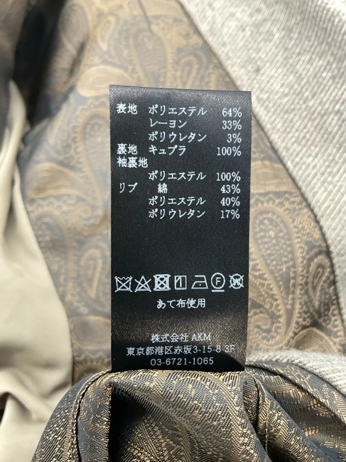 【素材】:表地:ポリエステル64% レーヨン33% ポリウレタン3%