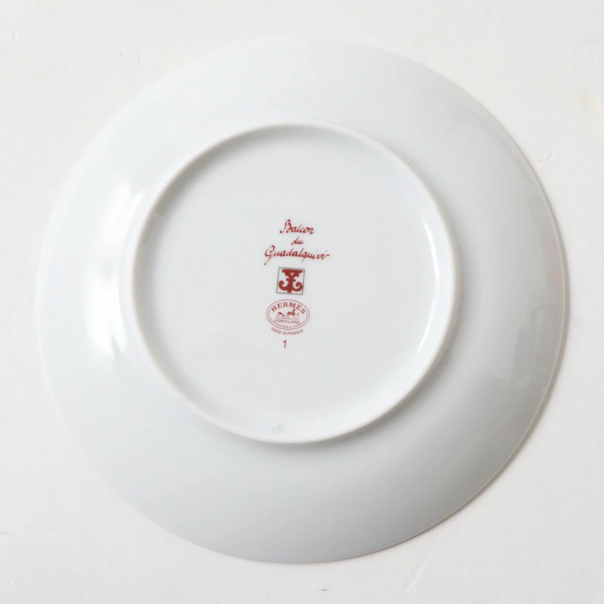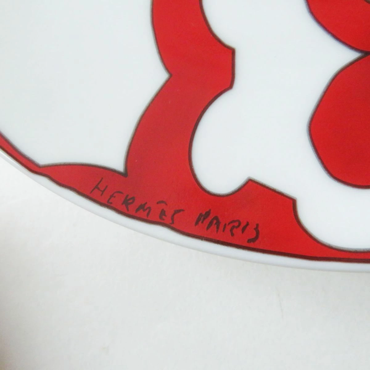 Unused, authentic HERMES GUADALQUIVIR bread plate, 17cm, white/red, with box. [Pre-owned]