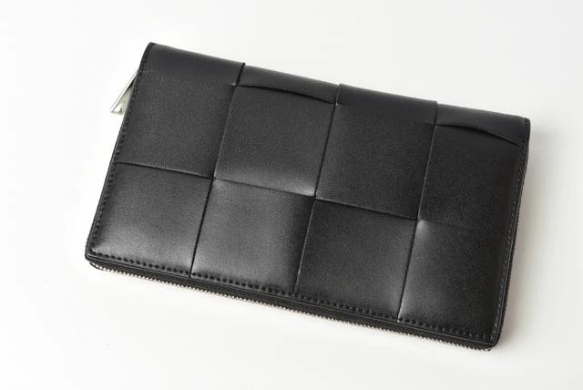 BOTTEGA VENETA 長財布/イントレチャート ジップアップアラウンド 649607 カーフ ブラック
