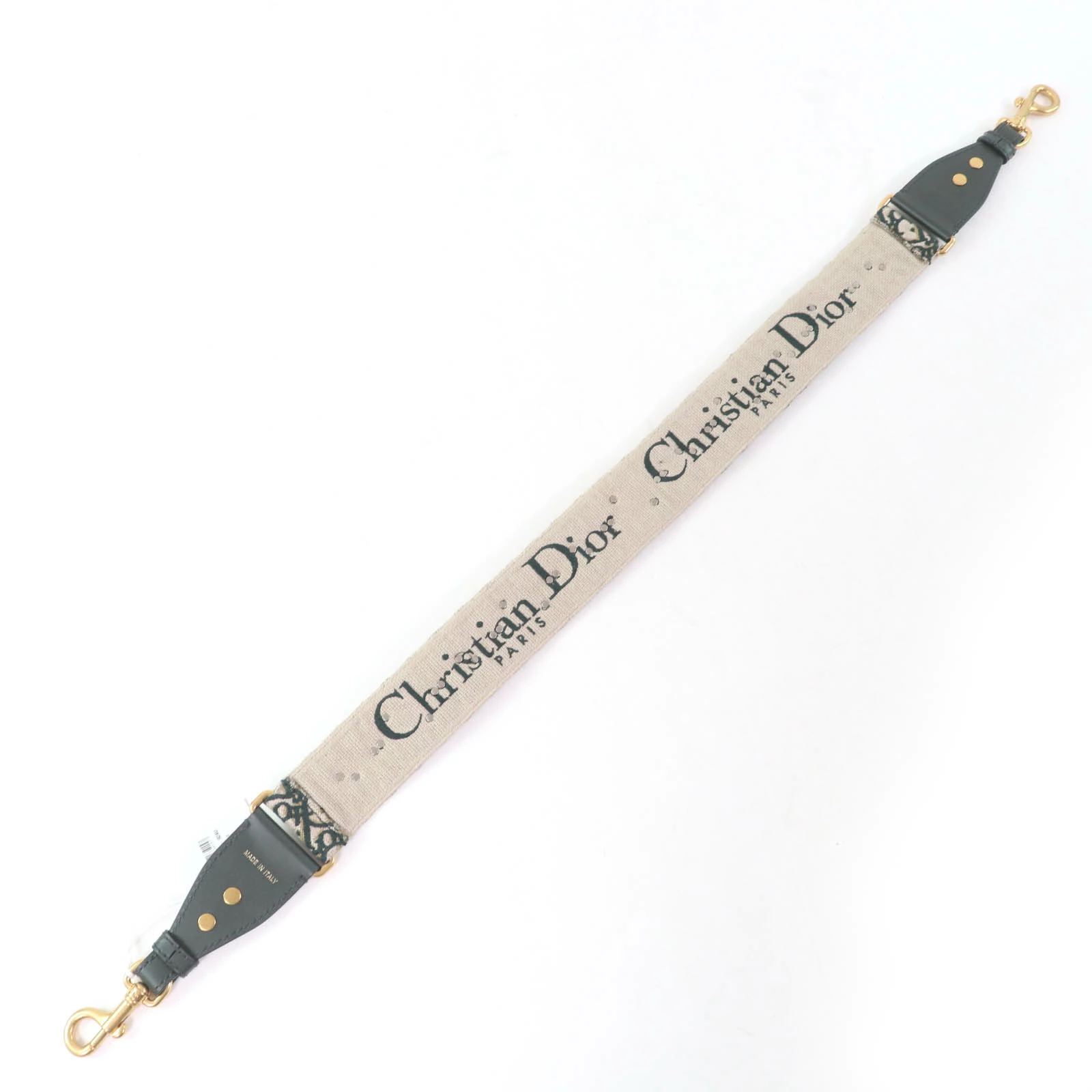 Unused Christian Dior Embroidered Shoulder Strap, Oblique, Green, Made in Italy, Women's [Pre-owned]