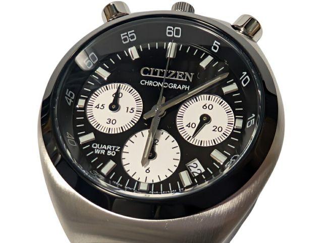 コメント・・・チズン初の本格クロノグラフ機能付き時計として1973年に登場した「クロノグラフチャレンジタイマー」のデザインを復刻したモデルになります♪ケースの12時側に配置されたプッシュボタンがツノのように見えることから「ツノクロノ」の愛称で呼ばれてきたモデルの復刻版になります!男女を問わず着用いただけるスタイリッシュな時計です◎