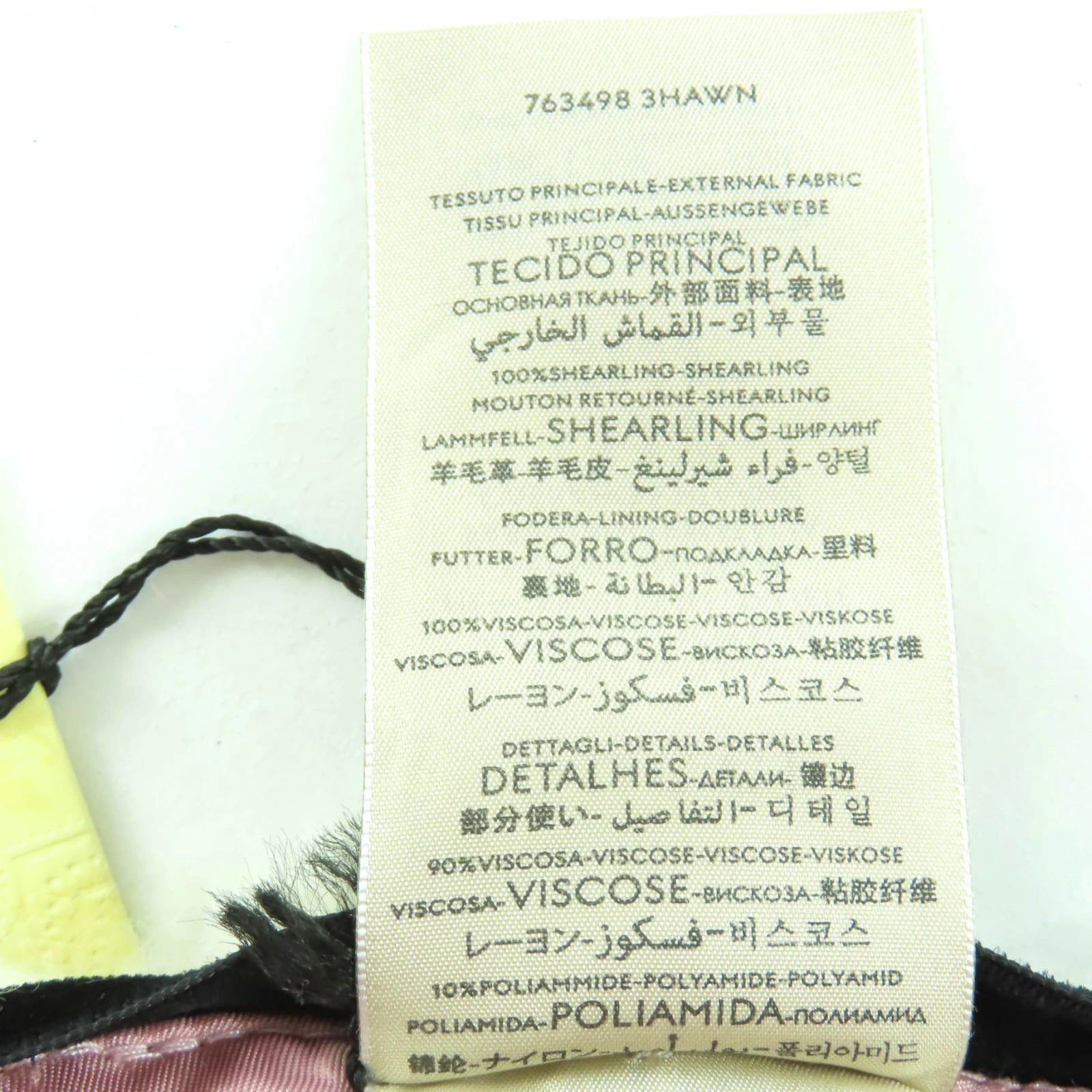| 素材 (material) | 本体:羊毛皮 裏地:レーヨン100% 一部:レーヨン90% :ナイロン10% | ||||||||||||||||