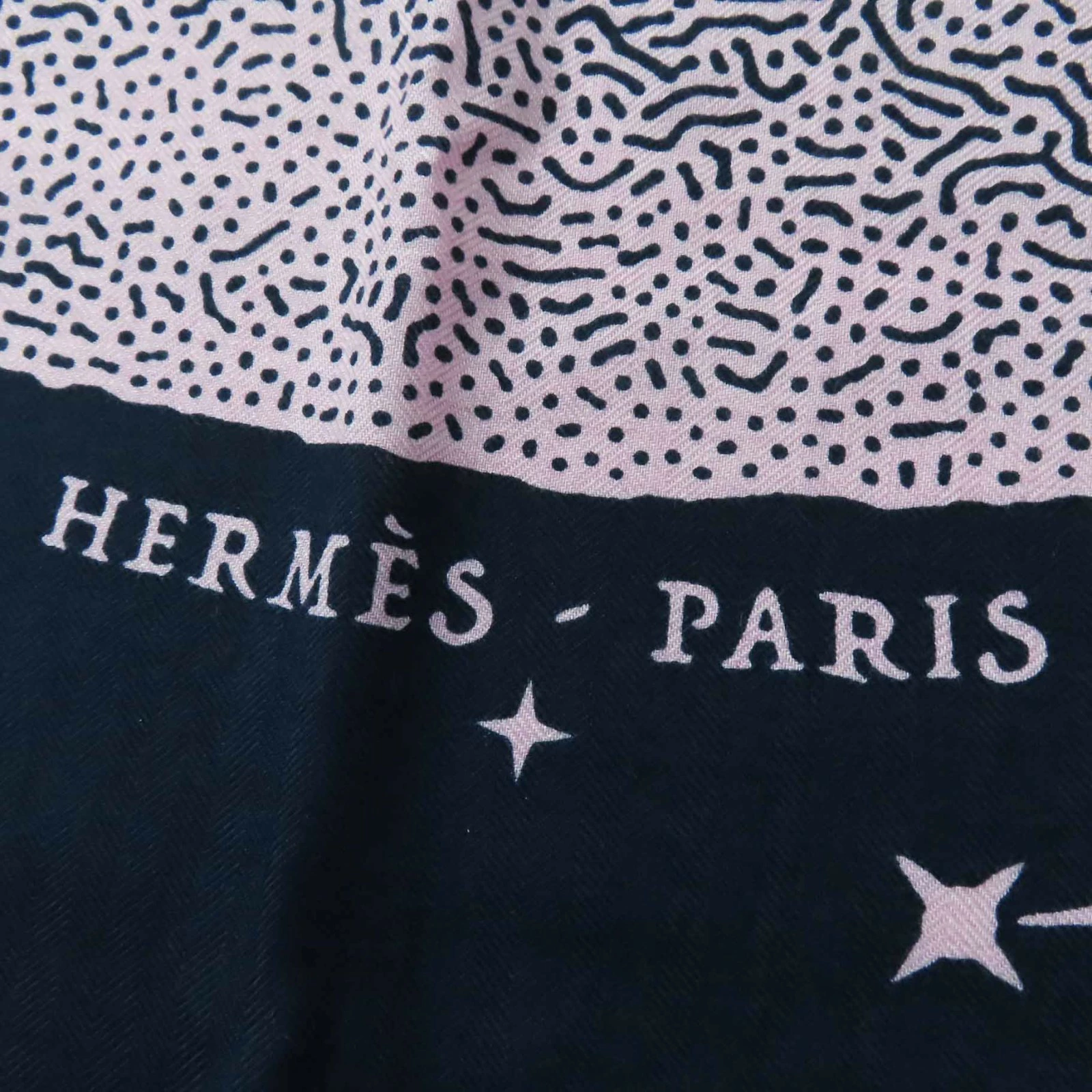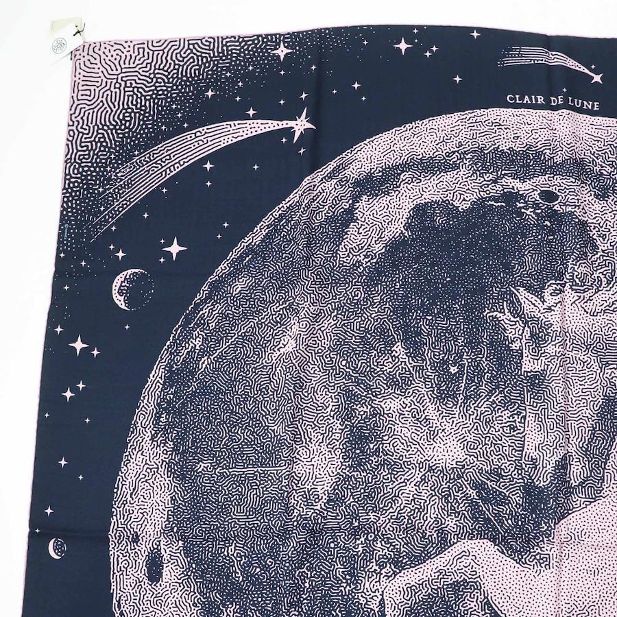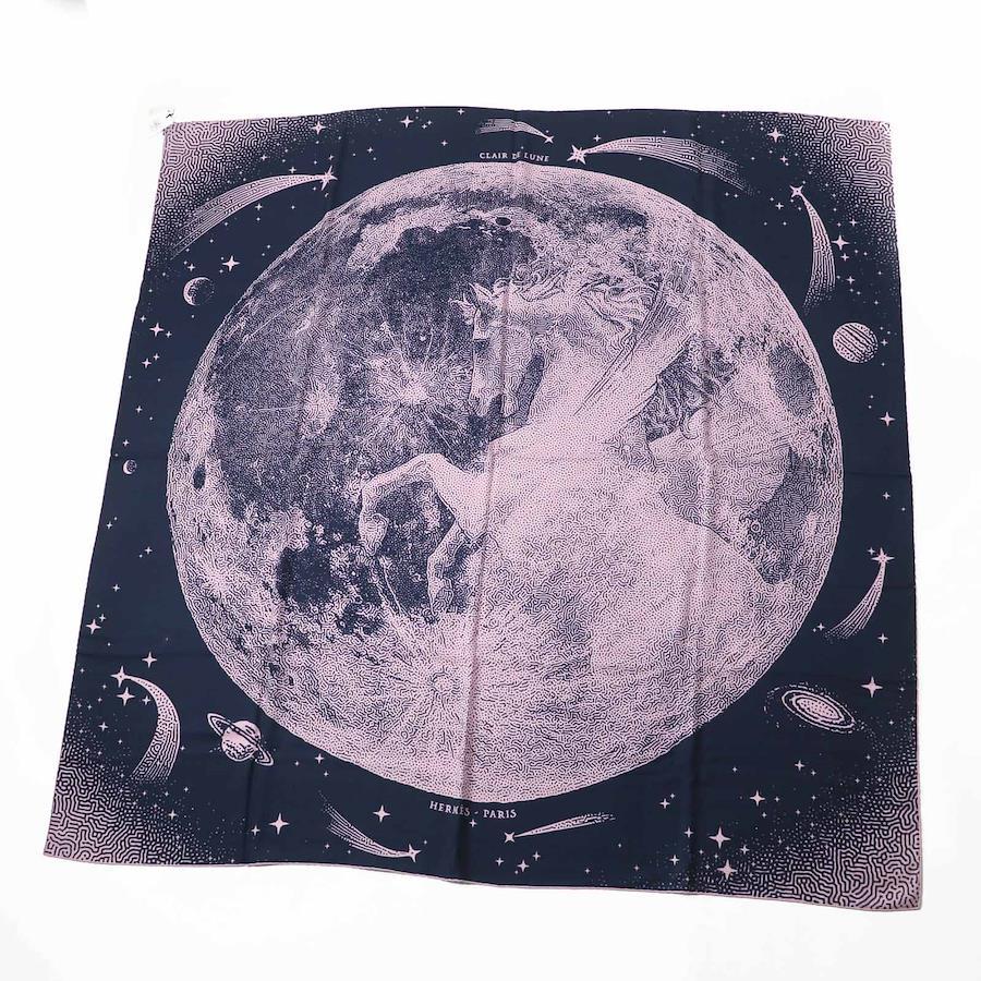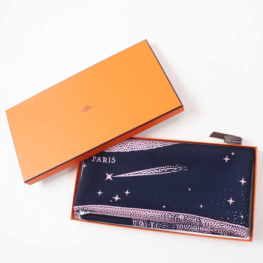 Unused Hermès Carré Geant 140 Clair de Lune cashmere and silk scarf with Marine View Rose pattern. Authentic, made in France, with box. Pre-owned.