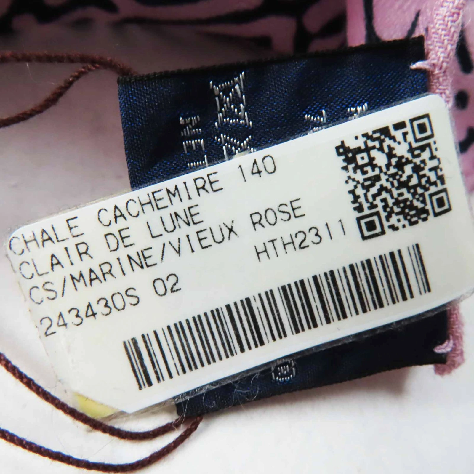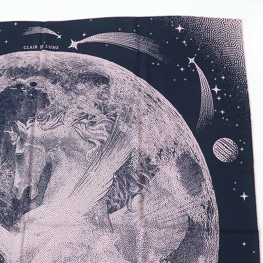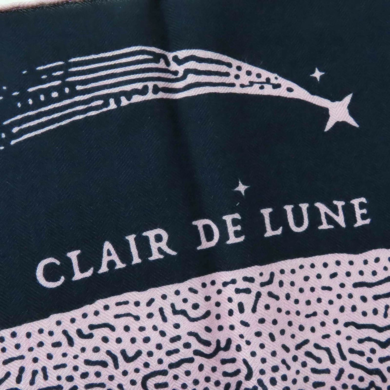 Unused Hermès Carré Geant 140 Clair de Lune cashmere and silk scarf with Marine View Rose pattern. Authentic, made in France, with box. Pre-owned.