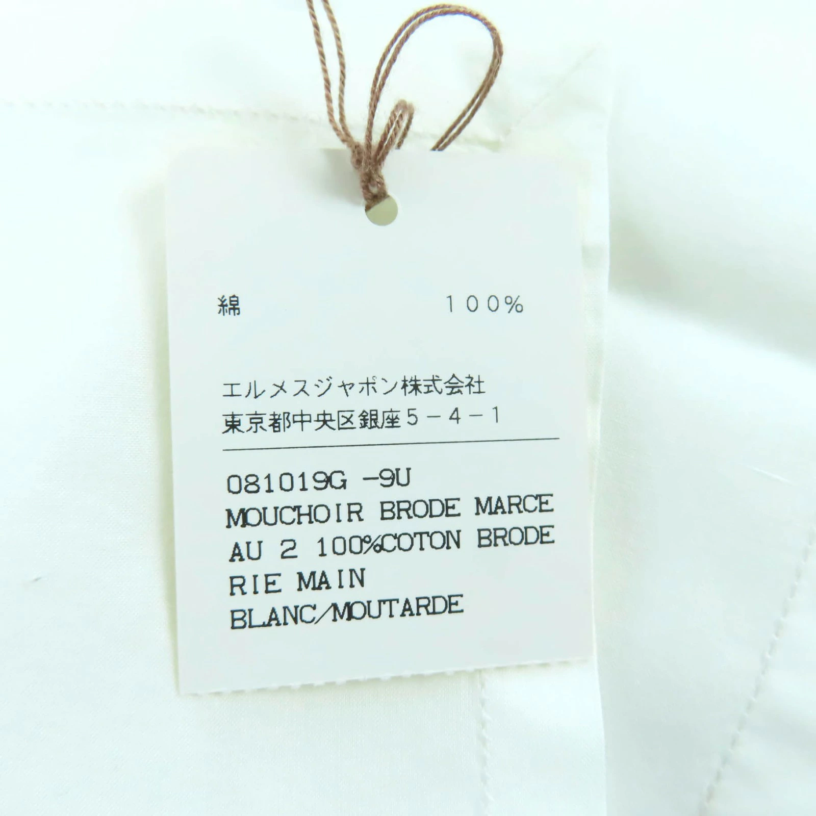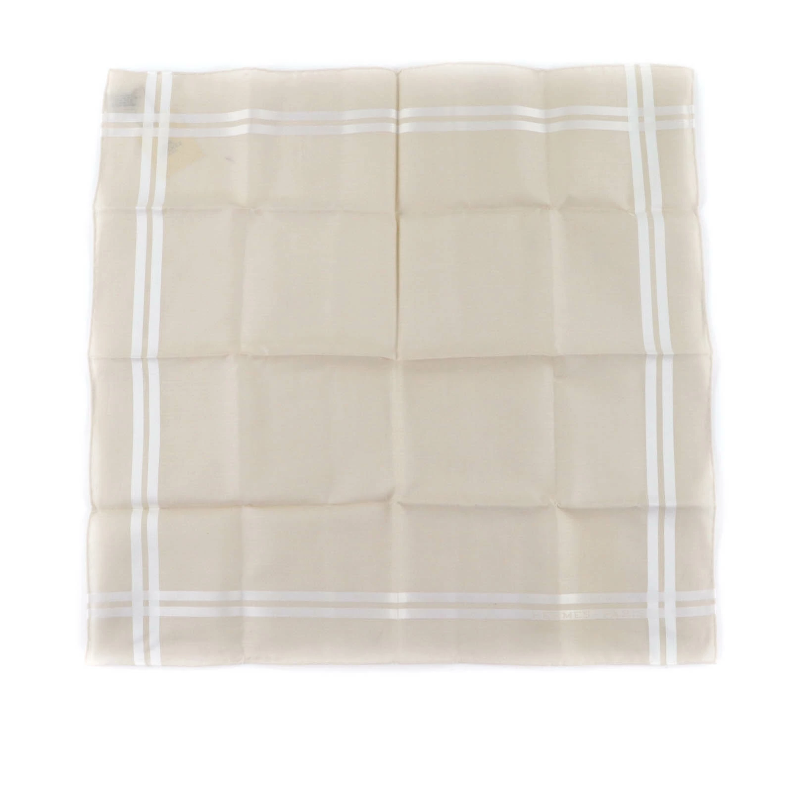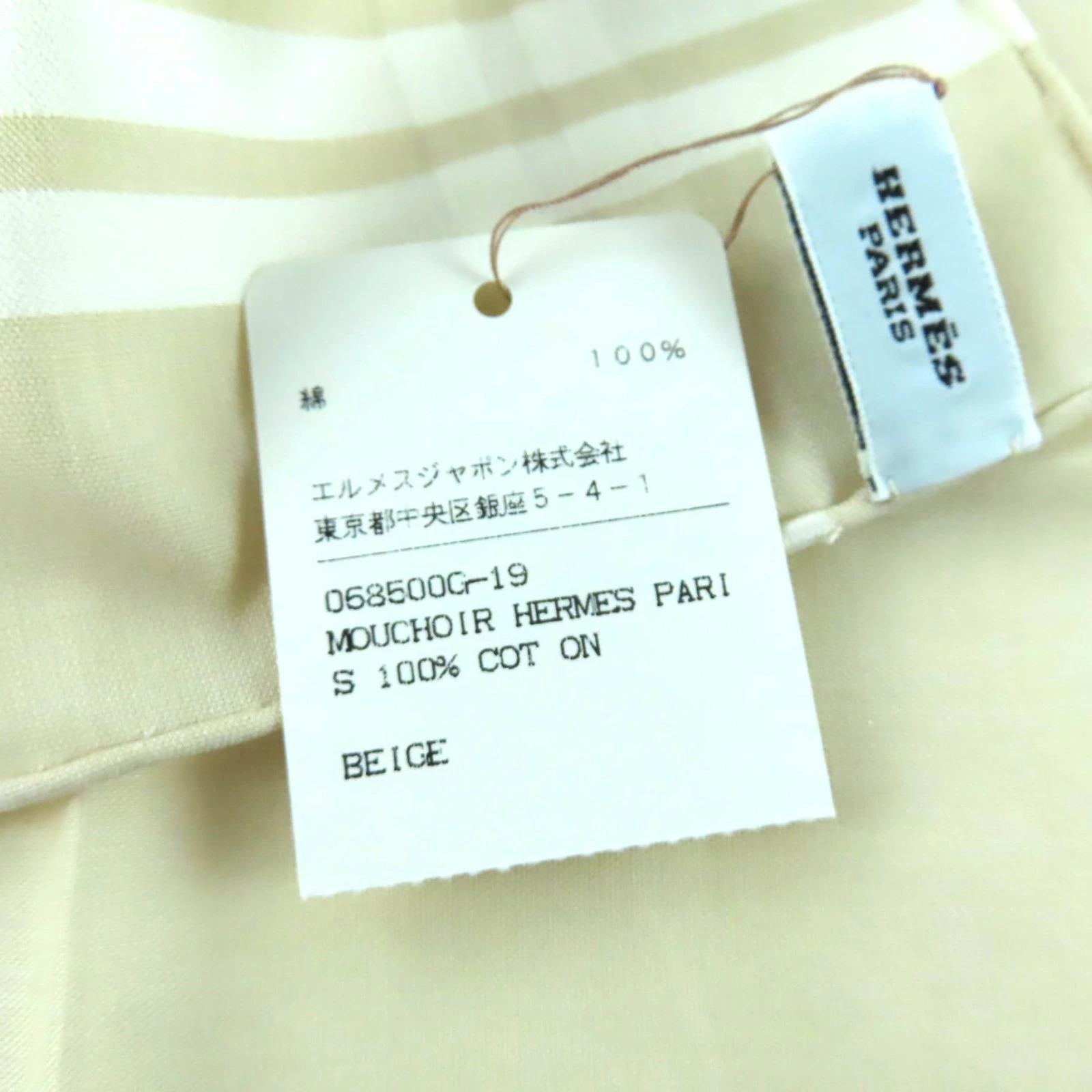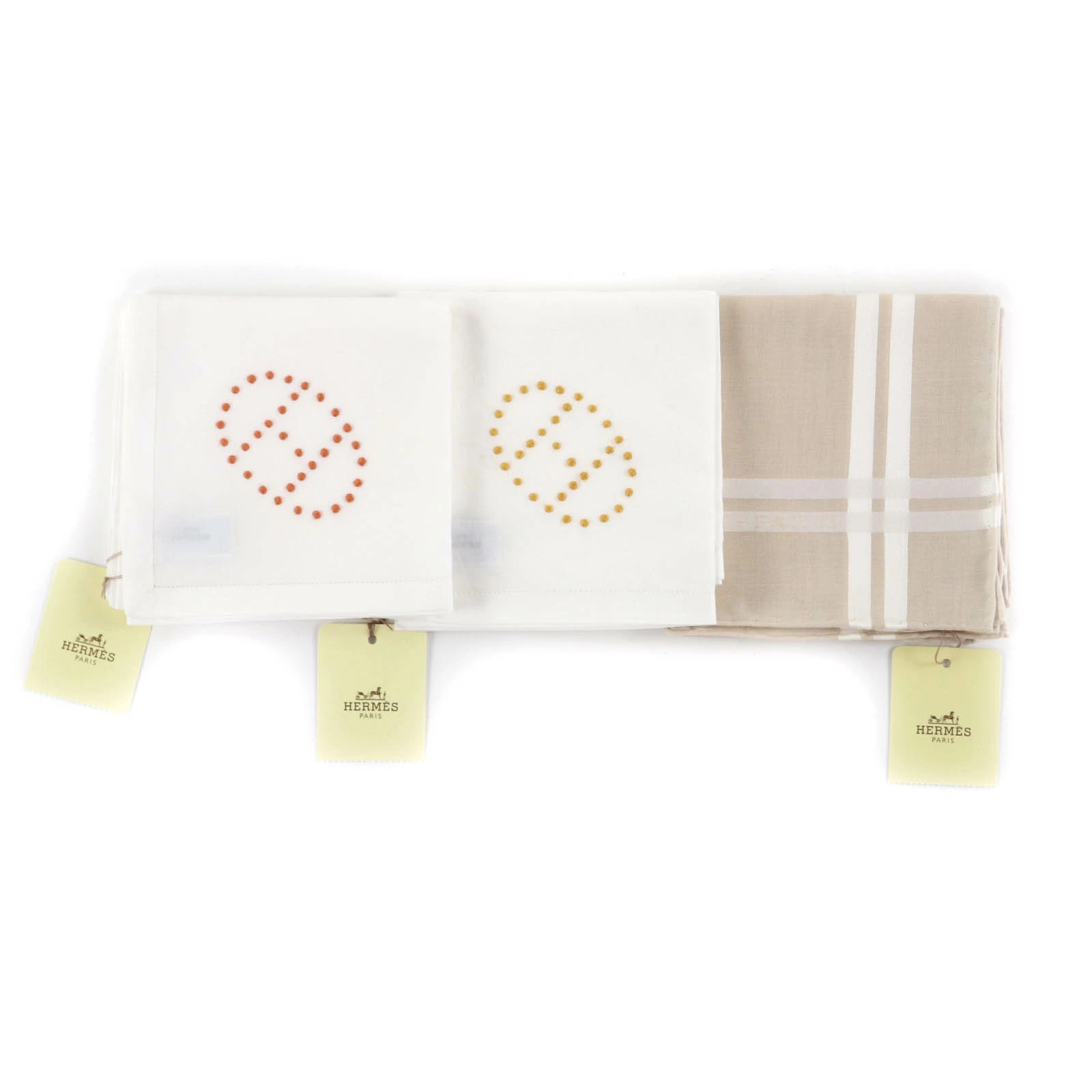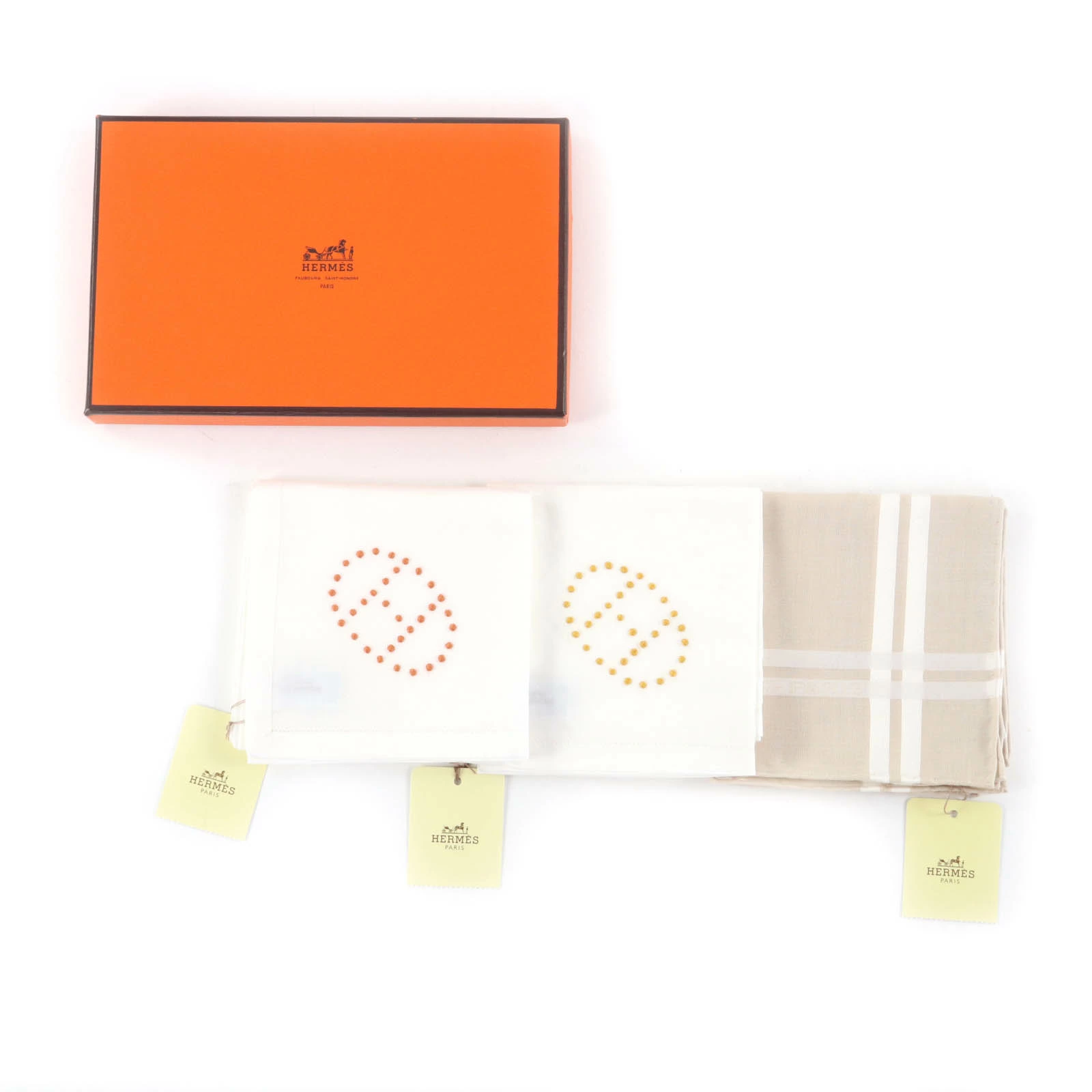 Unused HERMES 100% cotton handkerchiefs with logo and H design, set of 3, white and beige, with box, for women. [Pre-owned]