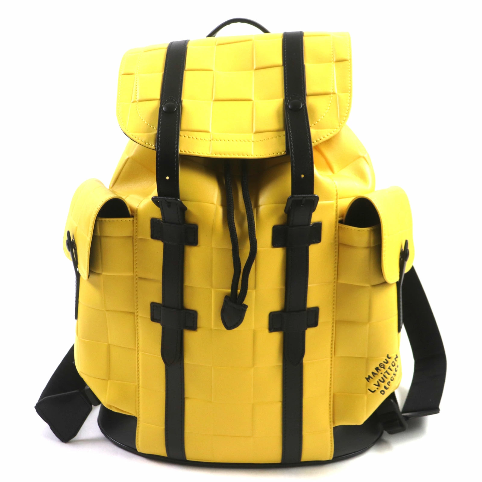 Unused Louis Vuitton M25016 Damier Scuba Christopher MM Leather Backpack/Daypack in Yellow and Black with Dust Bag, Made in France, Men's [Pre-owned]