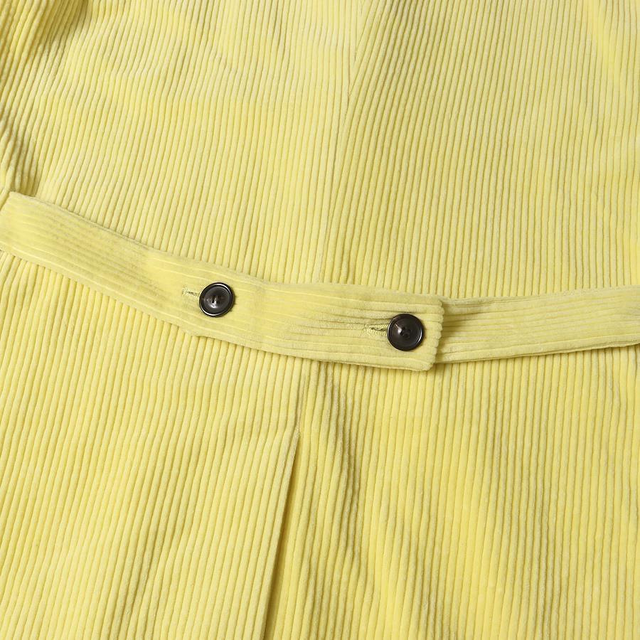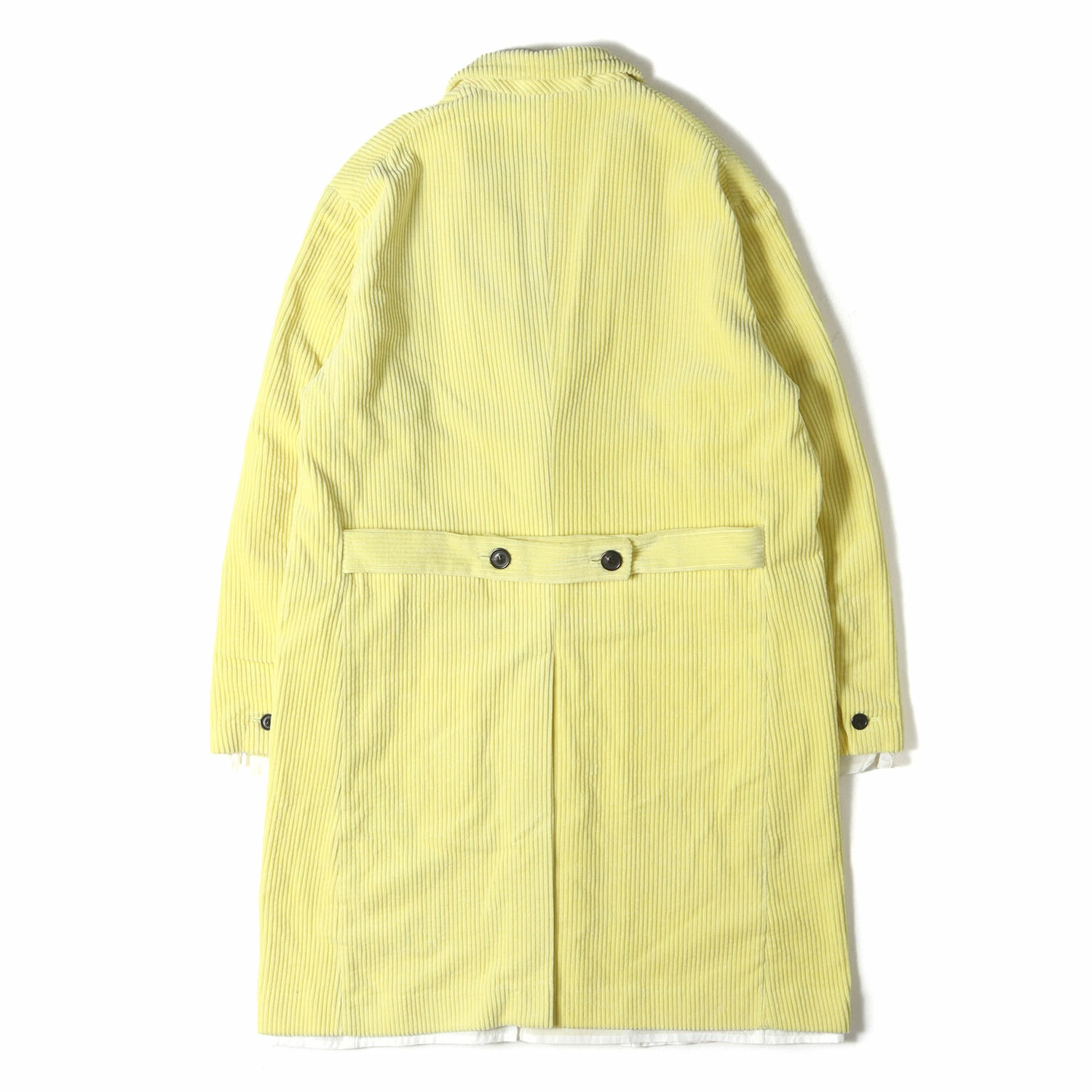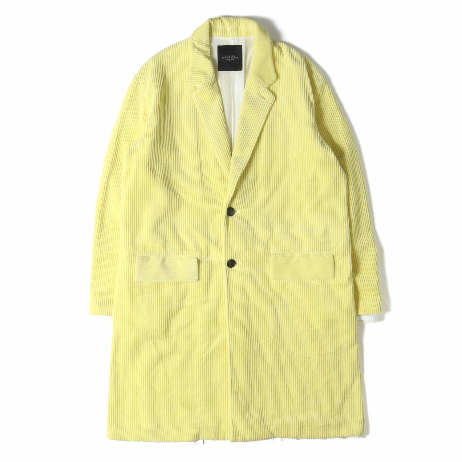 | 商品説明 | 超太畝コーデュロイ生地を使用し、裏地が少し表に見えるデザインで仕上げたチェスターコートになります。著名人着用のアイテムです。 |