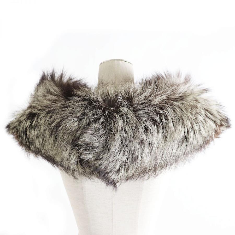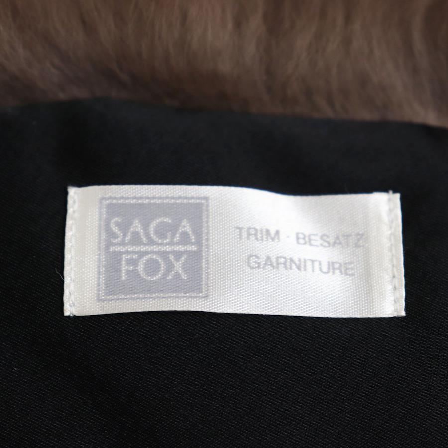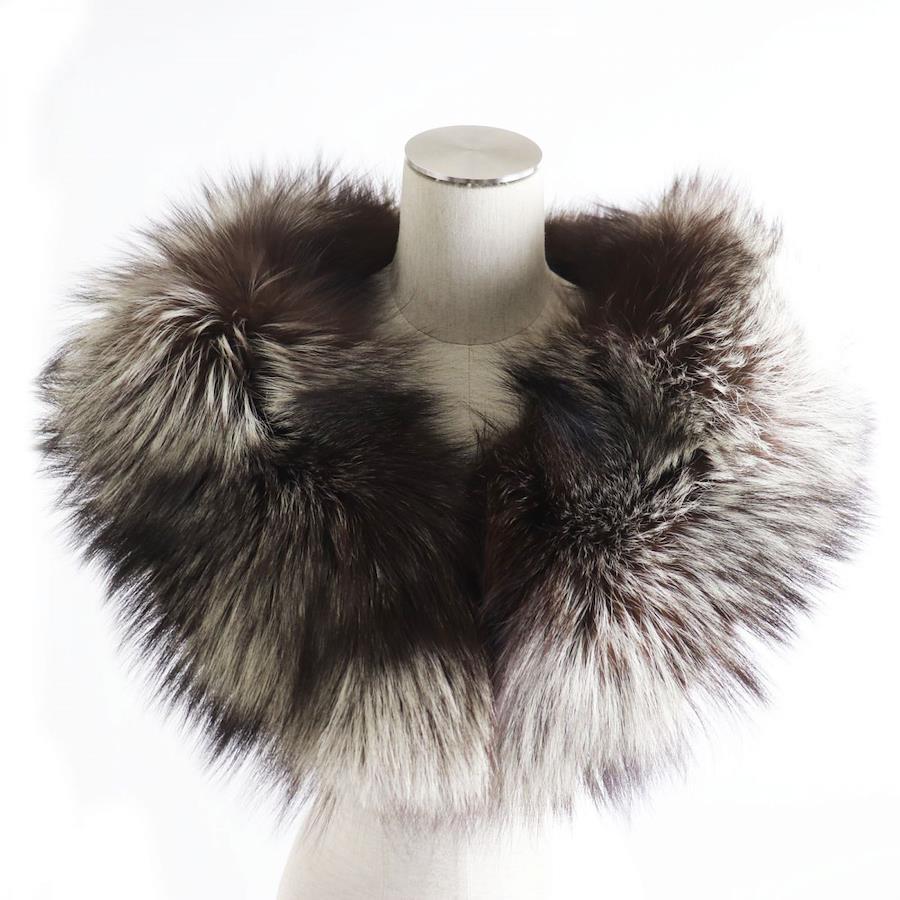 Unused SAGA FOX genuine fur shawl/stole/tippet with floral embroidered lining, white and brown. Soft and voluminous. [Pre-owned]