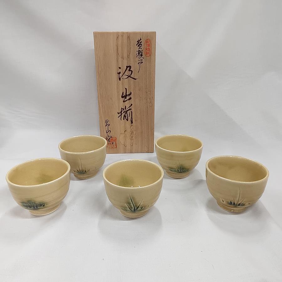 未使用 汲出揃 黄瀬戸 昌山窯 今井紀昭 箱付きです。外箱(木箱)には長期保管のため汚れ等、経年劣化がみられます