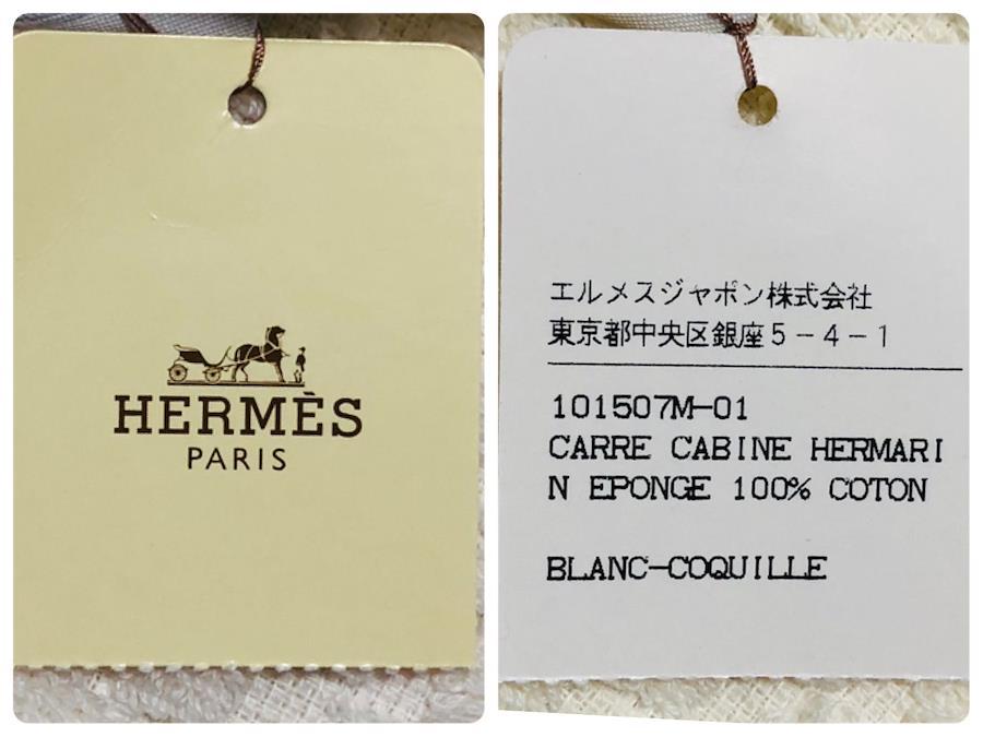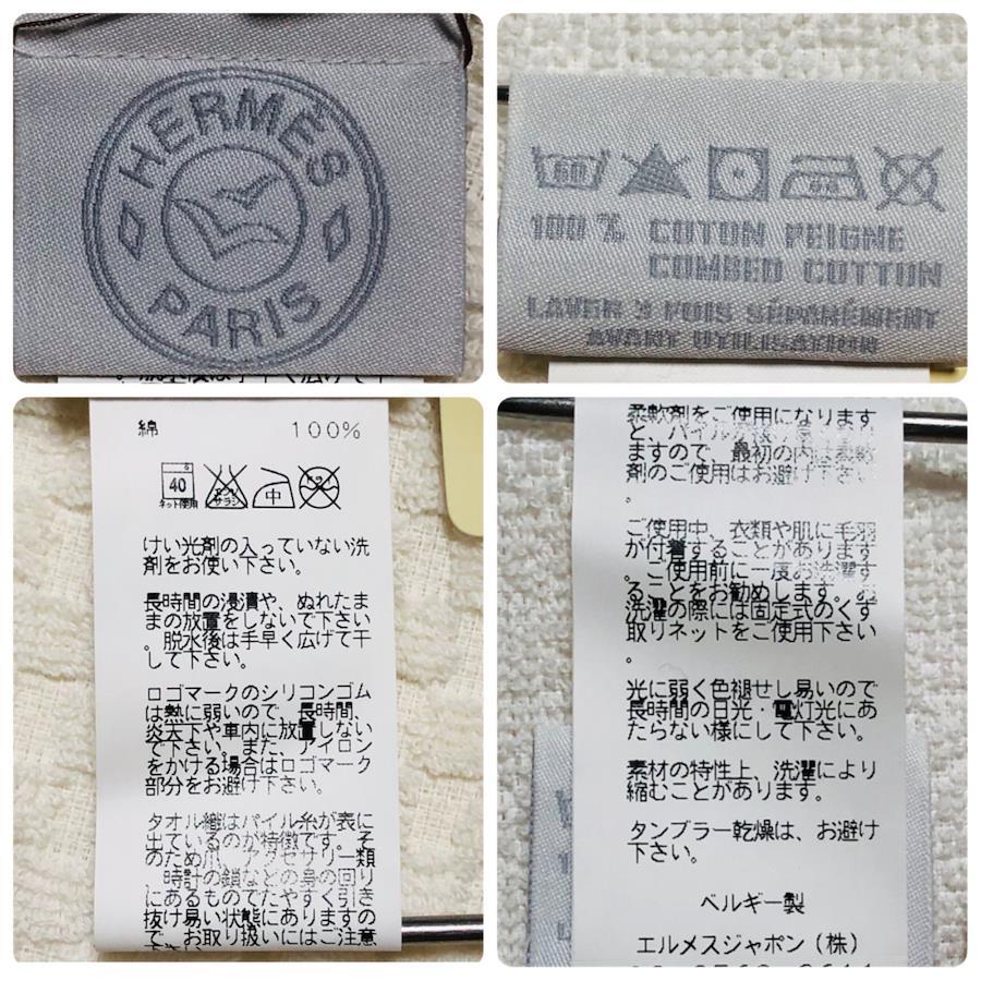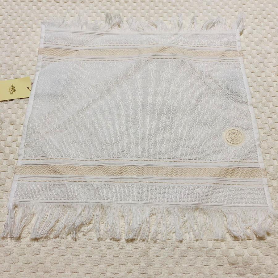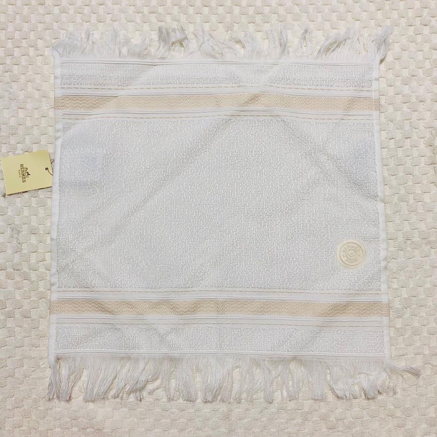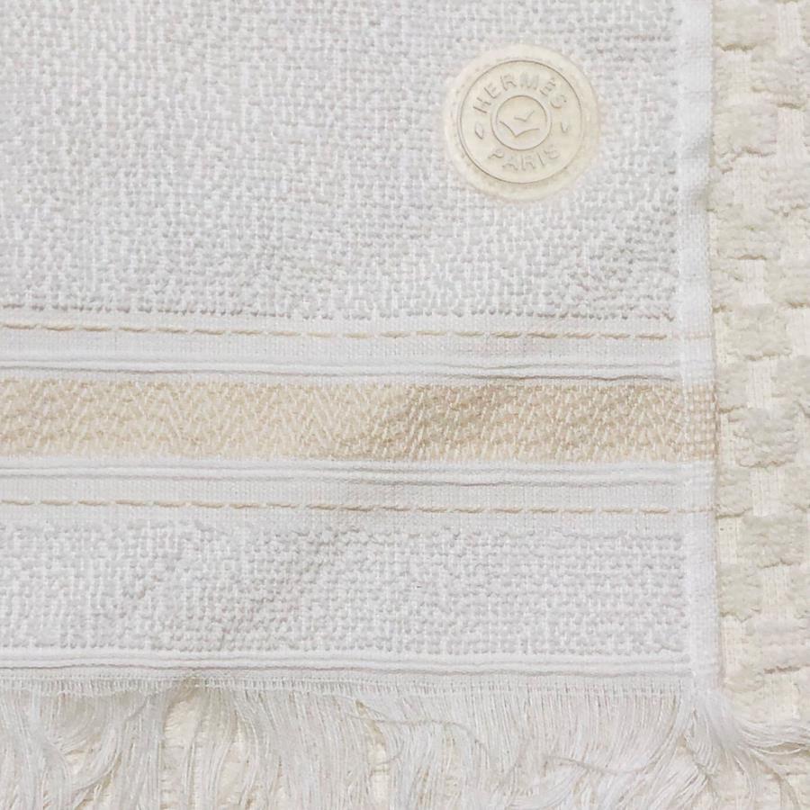 ■商品概要HERMES エルメスCARRE CABINE HERMARIN EPONGE カレフリンジハンドタオルロゴサークル セリエコットン100%ベルギー製ホワイト系アイボリー箱付きラグジュアリー 高級 ハイブランド