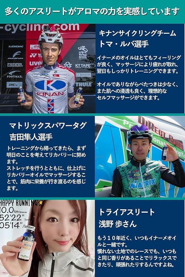 マッサージャーとして、プロ・アマを問わず多くのレース経験を重ねてきたkakoが選手の意見を反映し、生まれた「イナーメ・スポーツアロマ」。