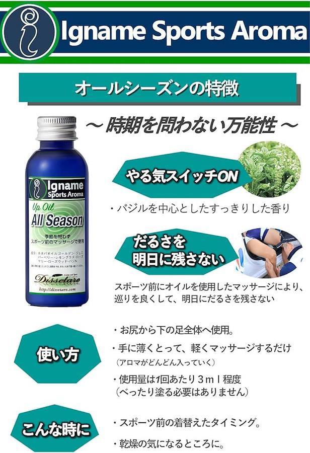 「オールシーズンの本格マッサージオイル」アスリート仕様のボディオイルです。