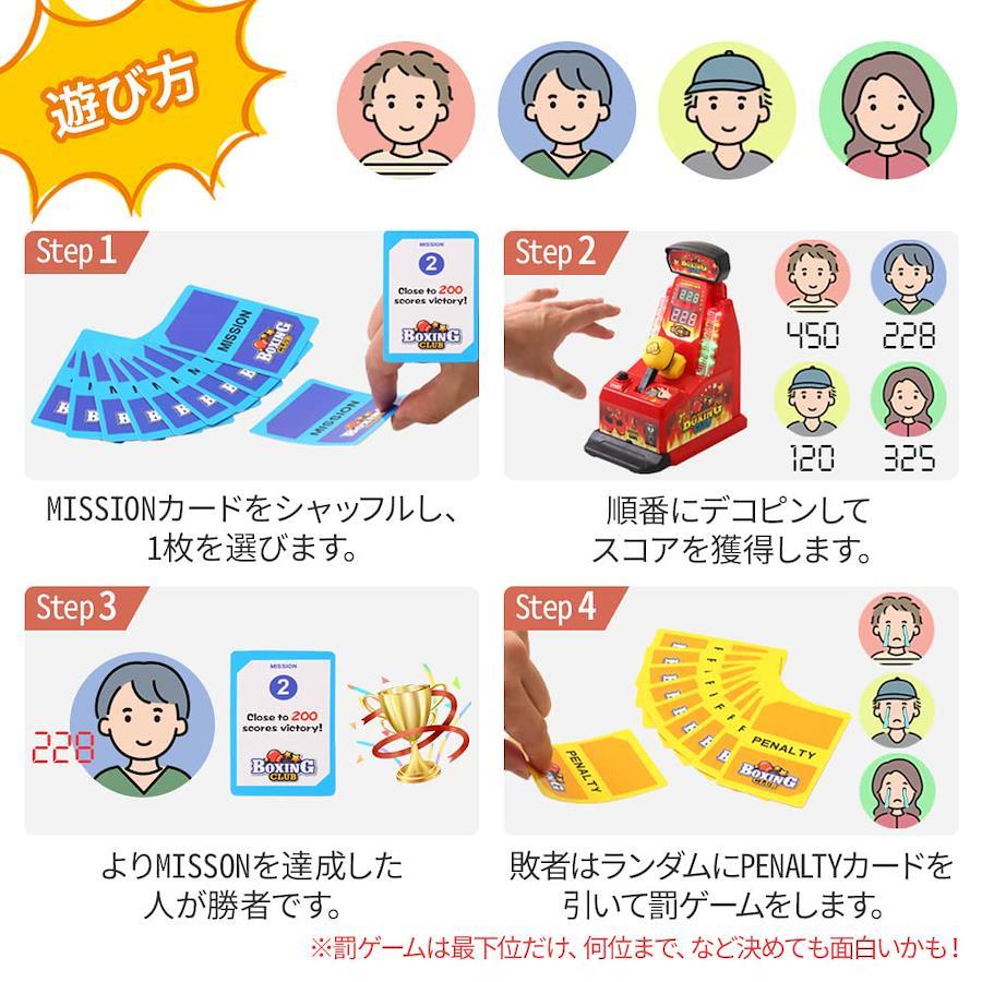 【ここがポイント】 ・安心やわらかい素材のパンチングサック ・ゲームを盛り上げるミッション&ペナルティカード ・最高得点も表示!見やすいディスプレイ ・盛り上がる音楽&LEDライト
