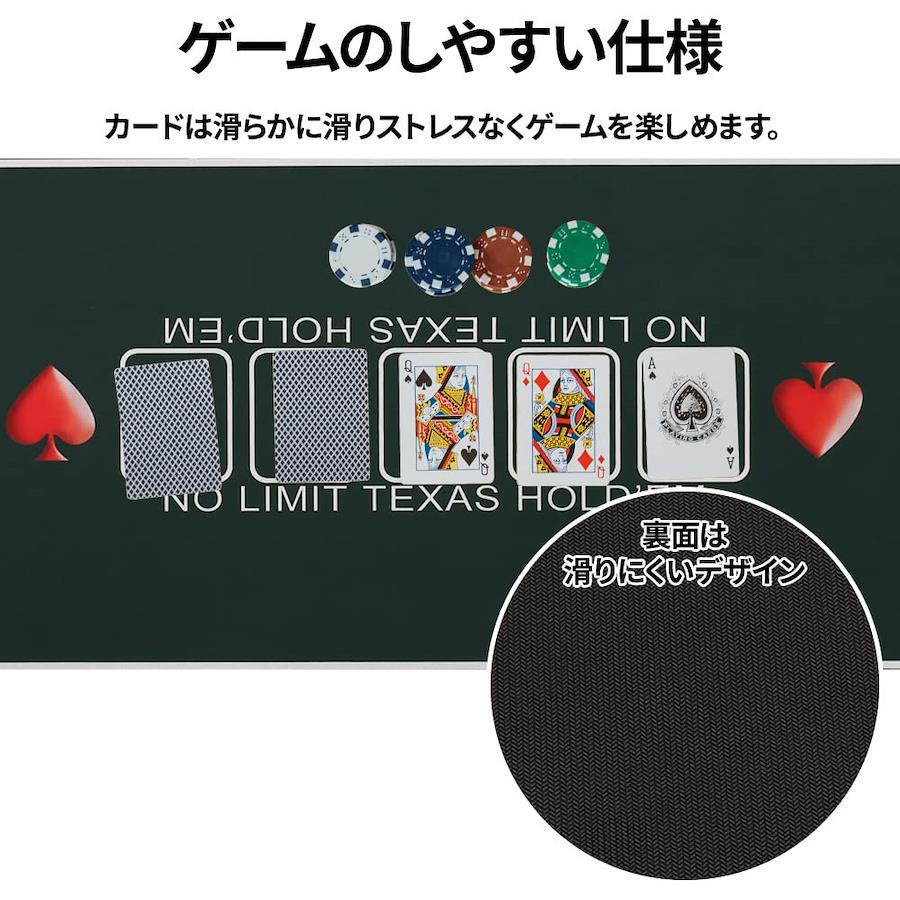 【高品質マット】表面はマウスパッドような素材でできており、カードは滑らかに滑りストレスなくゲームを楽しめます。やんわり沈み込む弾力のある素材で、カードはめくりやすく、チップも取扱いやすいデザインです。