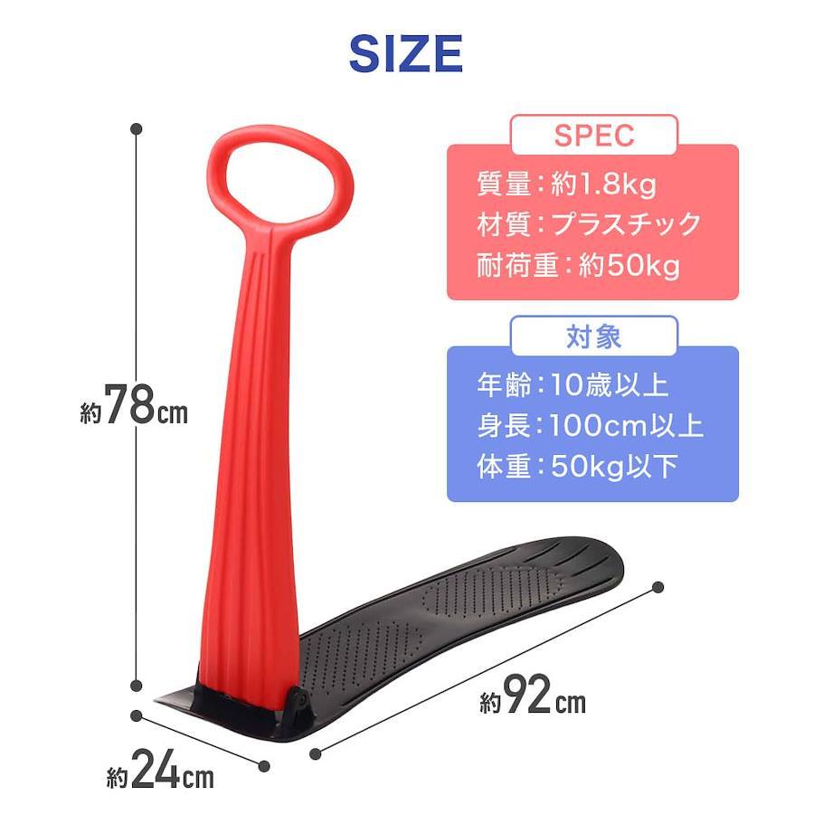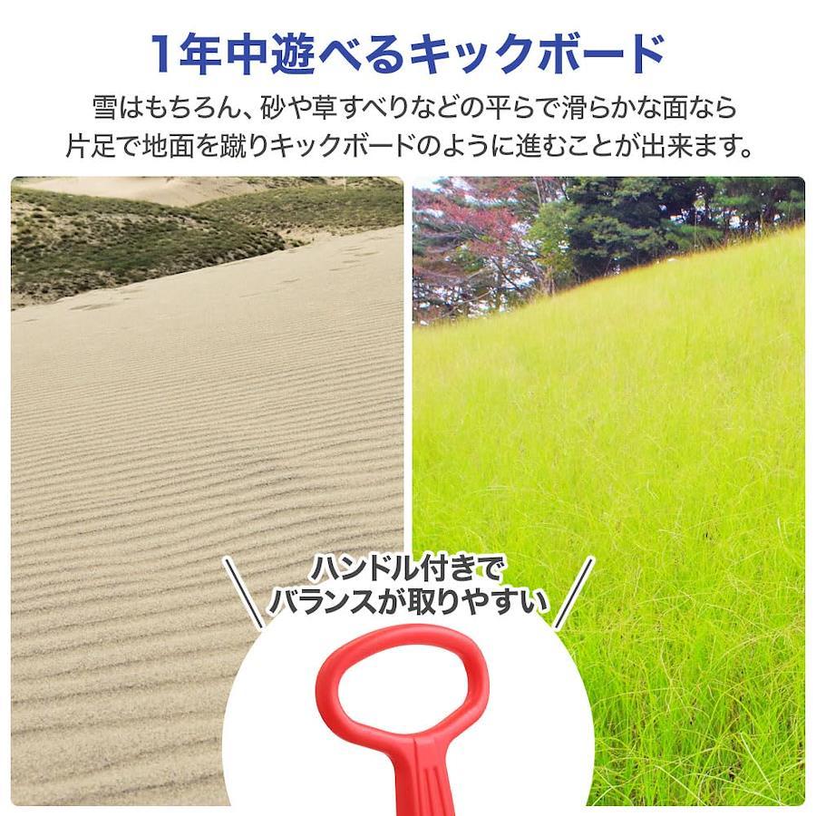 【お子さまも大喜び♪】 雪の上を蹴って滑るスノーキックボードです。 ソリに飽きたお子さまや、スノーボードやスキーを始めるお子さまの事前練習におすすめ! 【形状に工夫あり】 ボード部分は、前後と左右で歪みを出して、強度を出しています。 また、足を置く部分にはすべり止め加工が施されています。 【持ち運びラクラク】 ハンドルを倒すだけで簡単折りたたみ式。 持ち運びや車載に便利なコンパクト設計です。 【商品詳細】 サイズ(約):W92×D24×H78cm 質量(約):1.8kg 材質:プラスチック 耐荷重(約):50kgまで 対象年齢:10歳以上 対象身長:100cm以上 体重:50キロ以下 子供用 1人乗り 【注意事項】 ・ボード部分がねじれているのは仕様で製品の不良ではありません。 ・スノーパークや、雪上レクリエーション施設向きの設計です。 ・雪上での移動にキックボードとして利用するレベルの商品ですので、滑走などでスピードを出す使い方には向いておりません。 ・スキー場、ゲレンデでは指定場所で使用してください。また、各ゲレンデのルールに従いましょう。 ・ブレーキはありませんので大人が近くで見守ってあげてください。 ・体重制限があります。強度に影響がありますので、必ずお守りください。 【お子さまも大喜び♪】 雪の上を蹴って滑るスノーキックボードです。 ソリに飽きたお子さまや、スノーボードやスキーを始めるお子さまの事前練習におすすめ! 【形状に工夫あり】 ボード部分は、前後と左右で歪みを出して、強度を出しています。 また、足を置く部分にはすべり止め加工が施されています。 【持ち運びラクラク】 ハンドルを倒すだけで簡単折りたたみ式。 持ち運びや車載に便利なコンパクト設計です。 【商品詳細】 サイズ(約):W92×D24×H78cm 質量(約):1.8kg 材質:プラスチック 耐荷重(約):50kgまで 対象年齢:10歳以上 対象身長:100cm以上 体重:50キロ以下 子供用 1人乗り