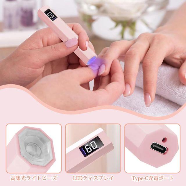 サイズ:103mm*19mm◆商品名:UrbanPulseネイルライトペン型ジェルネイルライトLEDディスプレイuvライトレジン用硬化ライト速乾2階段タイマーUSB充電式Type-C充電ポート(ピンク)