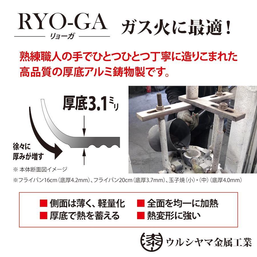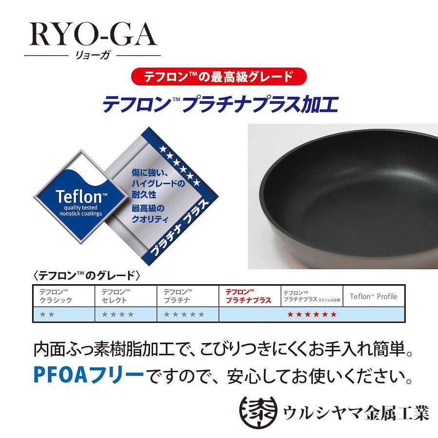 3営業日以内に発送≪新品未開封品≫:ウルシヤマ金属工業 フライパン 26cm ガス火専用 最高級テフロンプラチナプラス加工 日本製 リョーガ