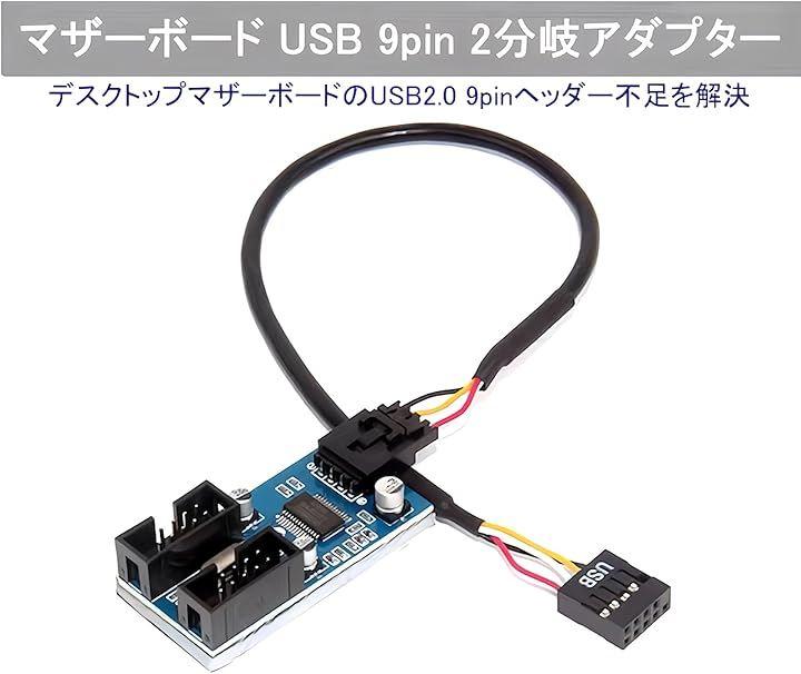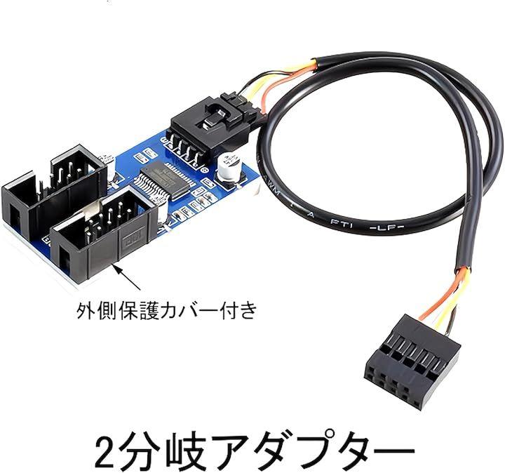 「機能」マザーボードのUSB2.0 9pinを分岐することで差し込み箇所を1か所増やすことができます。