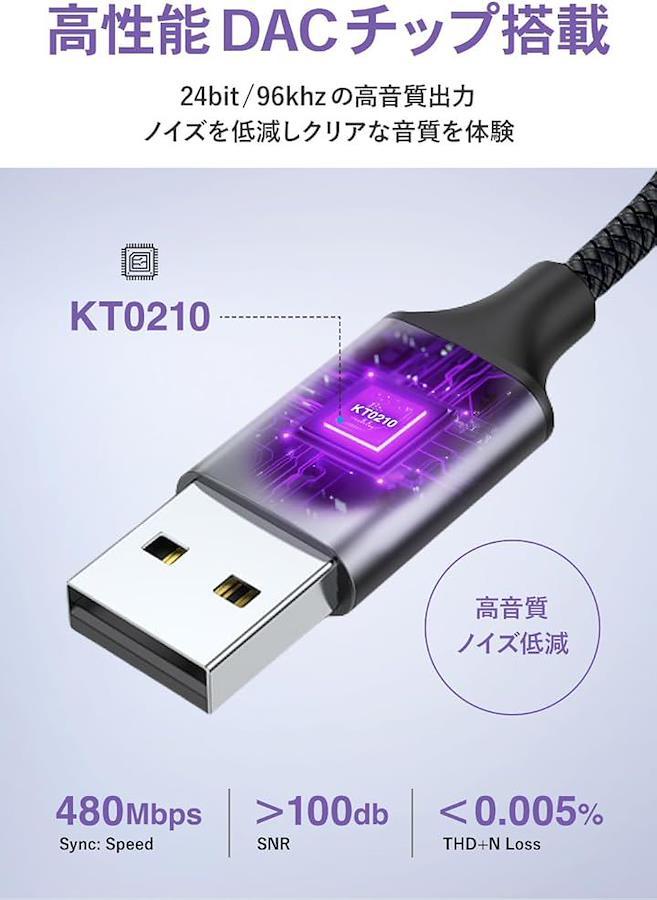「DACチップ(KT0210)内蔵」音声出力では24bit/96KHzのHi-Fiオーデイオ出力、100dB以上のS/N比のクリアで臨場感あふれる音質を提供します。