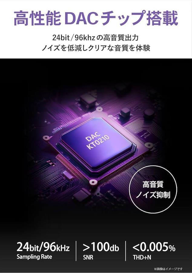 「最大24bit/96kHzのオーディオ再生」音声出力では24bit/96KHzのHi-Fiオーデイオ出力、100dB以上のS/N比のクリアで臨場感あふれる音質を提供します。