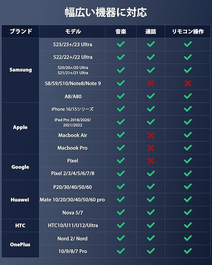 「通話&リモコン操作対応」音楽再生だけでなく、再生・一時停止、音量調整、曲送りなどのリモコン操作にも対応。