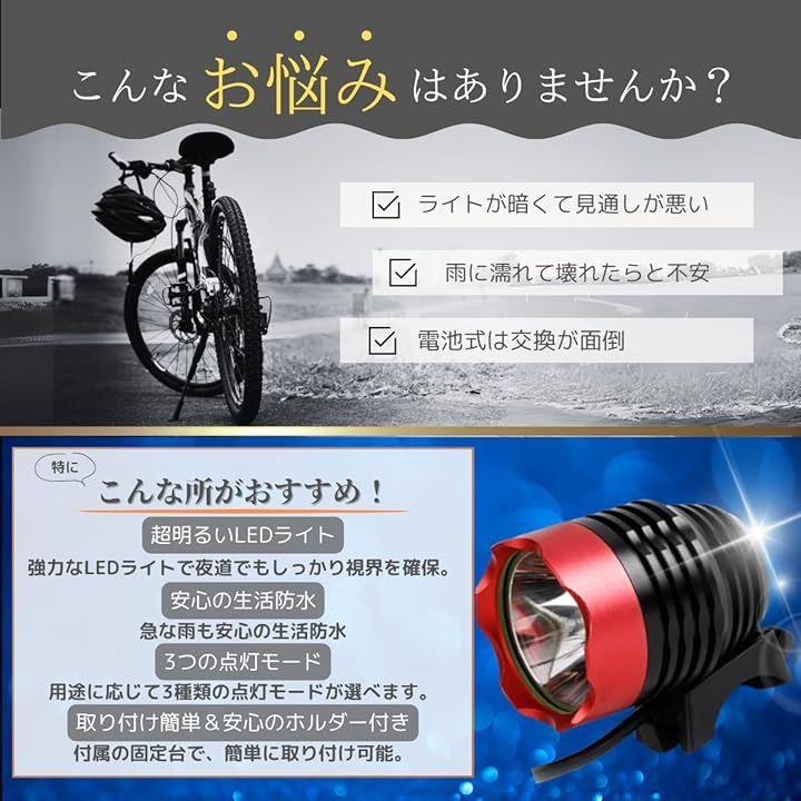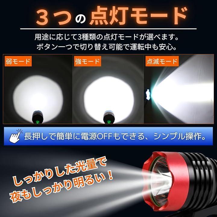 「高照度LED」 最大1800ルーメンのサイクルヘッドライトで夜道にも便利。