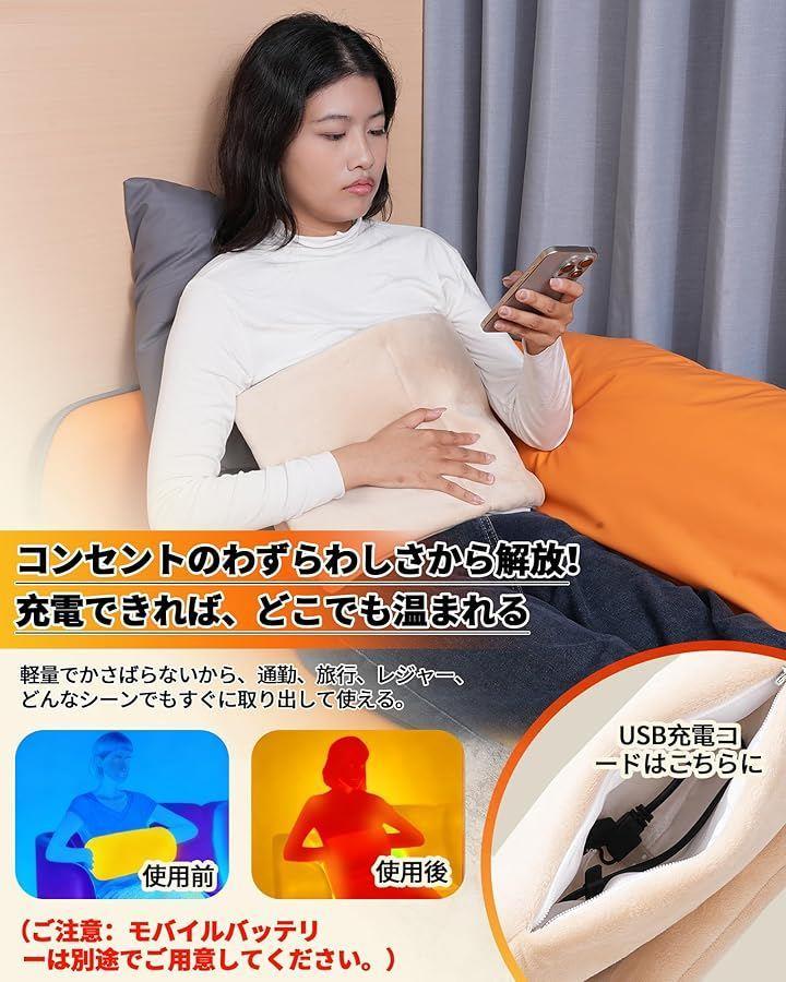 モバイルバッテリーがあれば場所を選ばず、オフィスや外出先、屋外でもポカポカが持続します。