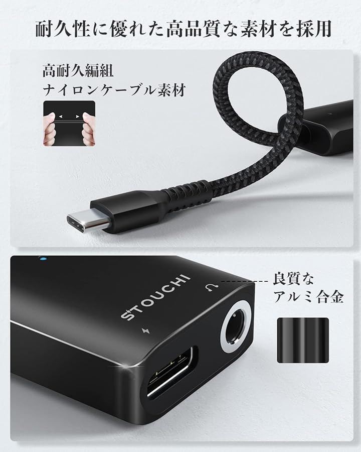 本体には高耐久編組ナイロンケーブル素材や良質なアルミ合金を採用しています。
