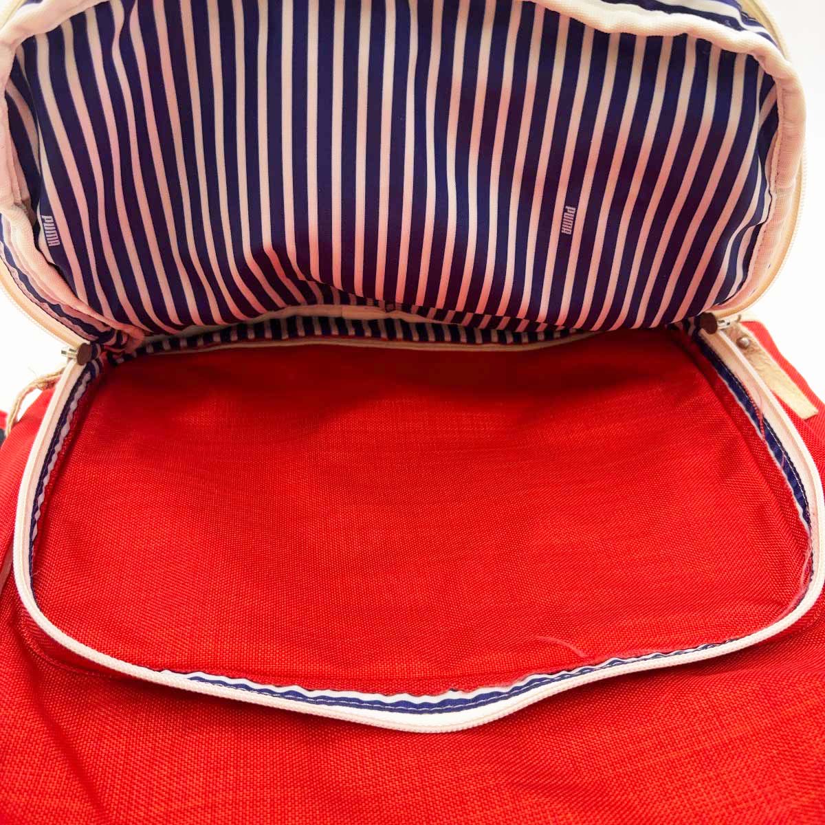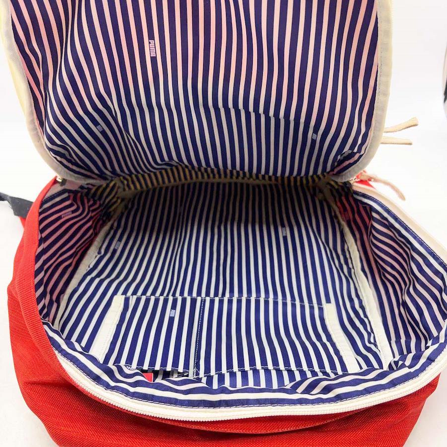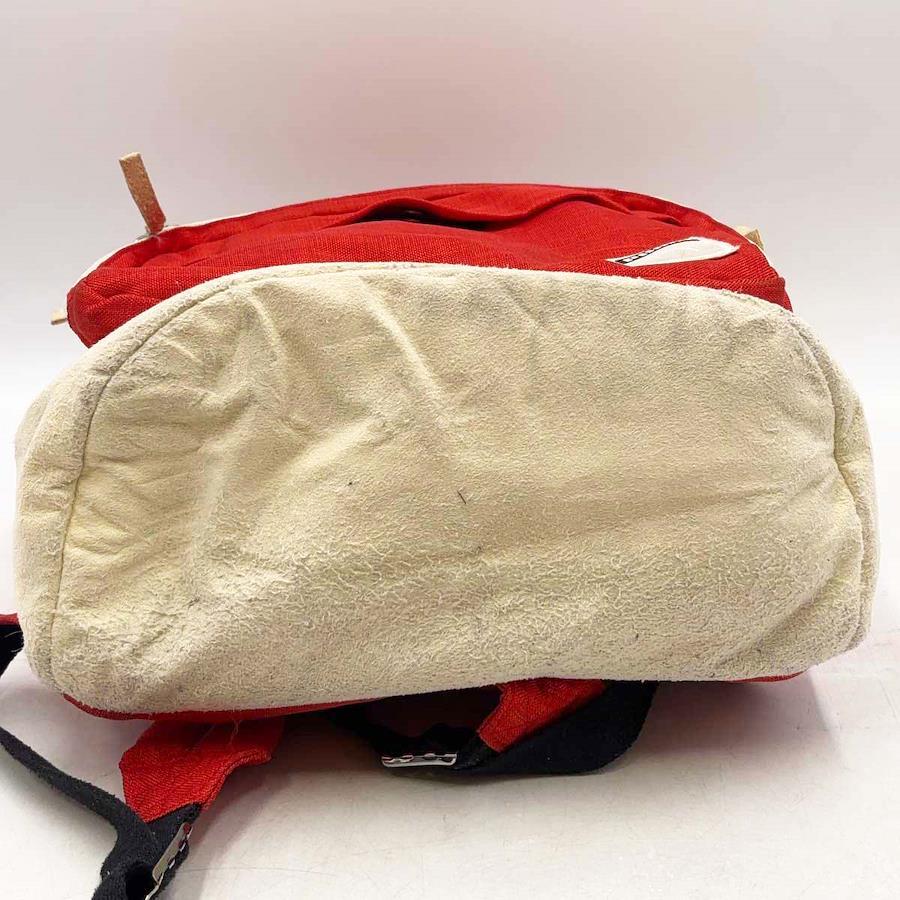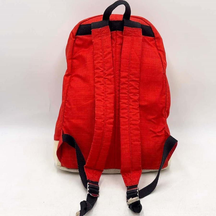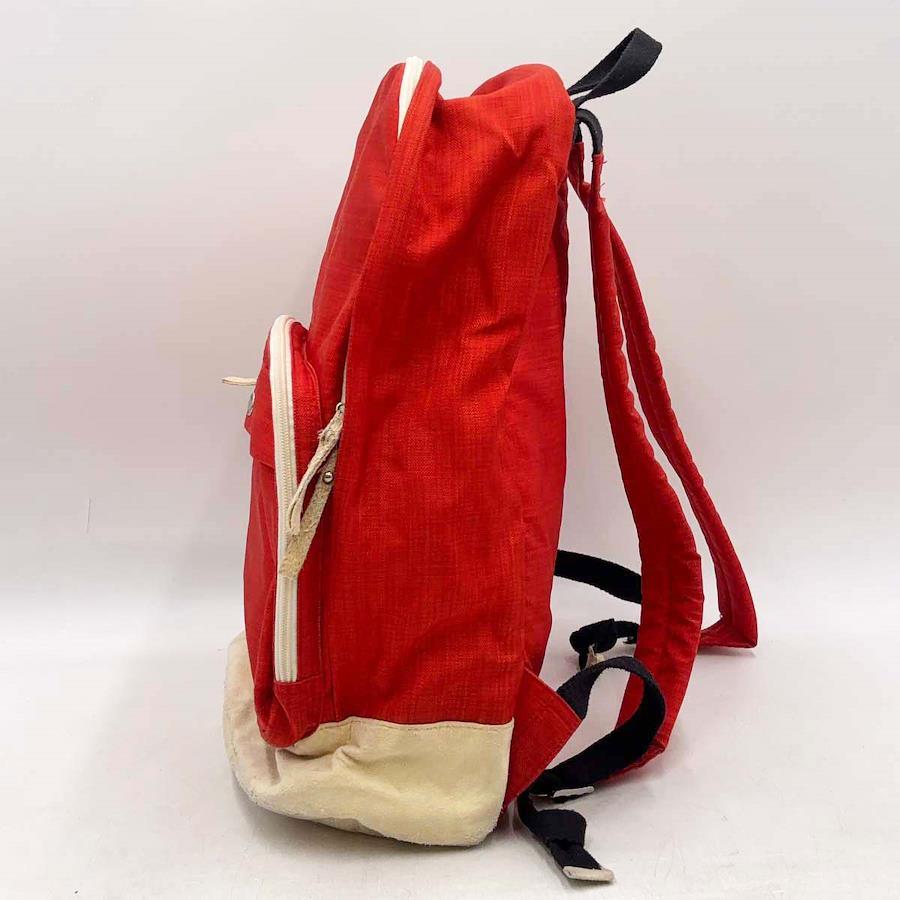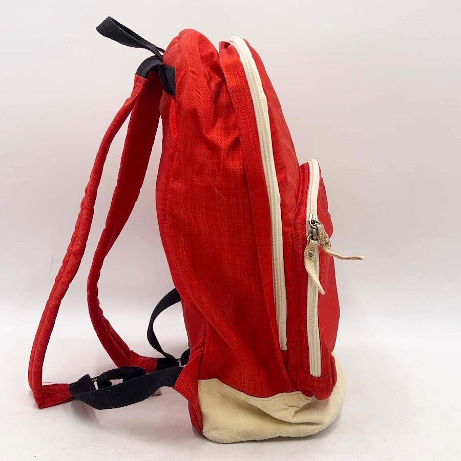 [タイプ] リュック デイパック[カラー] レッド サイズ:縦約45×横約30cm[マチ] 約18cm[状態] 大きなダメージはみられませんがある程度使用感があり、底面が毛羽立っています。