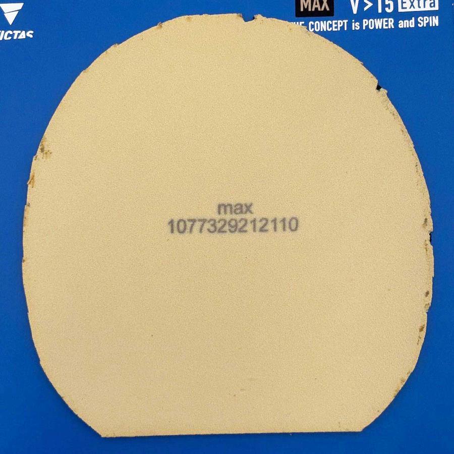 [タイプ] V 15 エキストラ 黒 MAX 卓球ラバー[縦(最大)] 約154mm[横(幅/最大)] 約149mm[下辺] 約95mm[状態] 端などに傷みやスレがみられます。